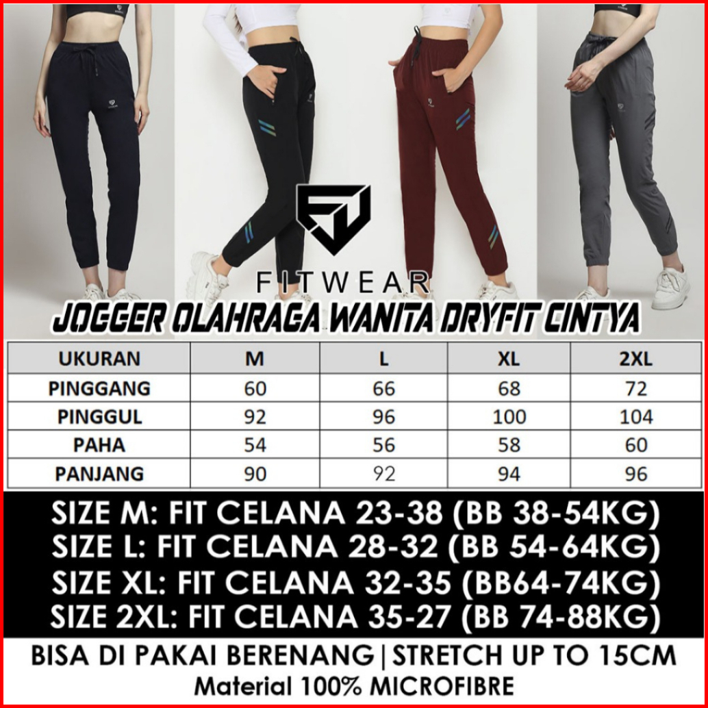 Fitwear - Jogger Olahraga Wanita Cintya Trackpants Waterproof Color Flash - M - 2xl