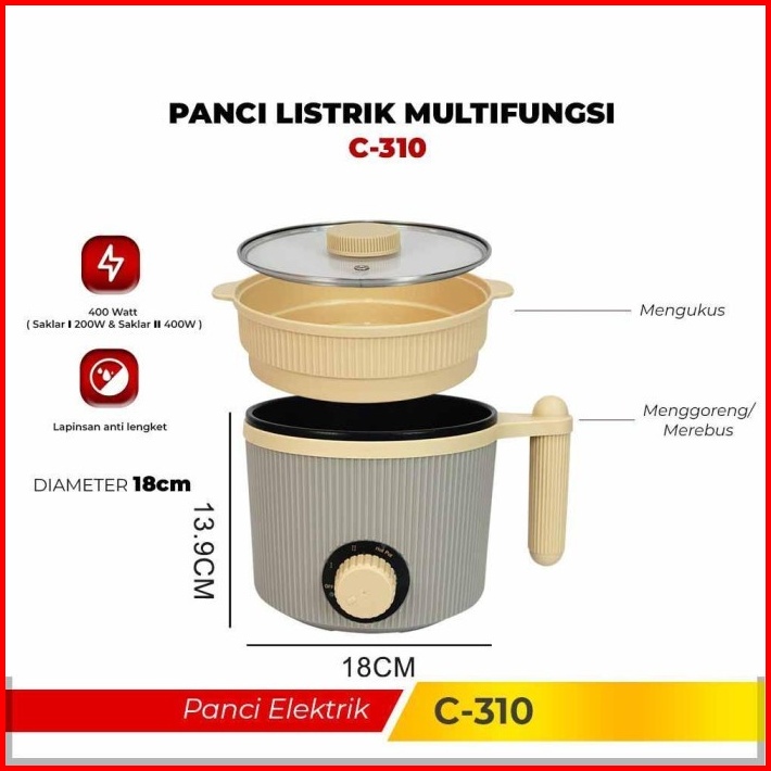 Advance C-310 Panci Listrik Serbaguna Kukusan Steamer Cooker Kapasitas 1.6 Liter Low Watt Garansi Resmi 12 Bulan