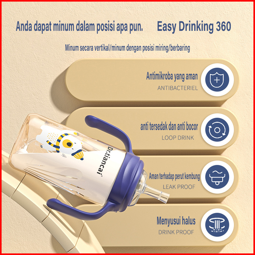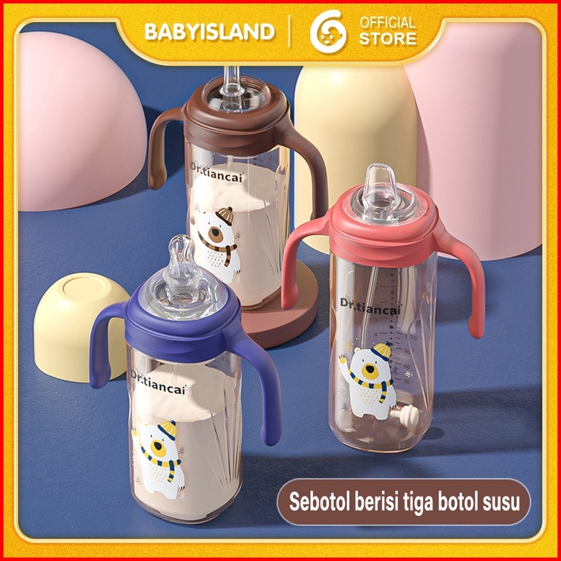 1 Cangkir 3 Dot Botol Susu Bayi Gelas Anak Anti Tumpah Botol Kartun 320ml Bayi Susu Bottle Sedotan