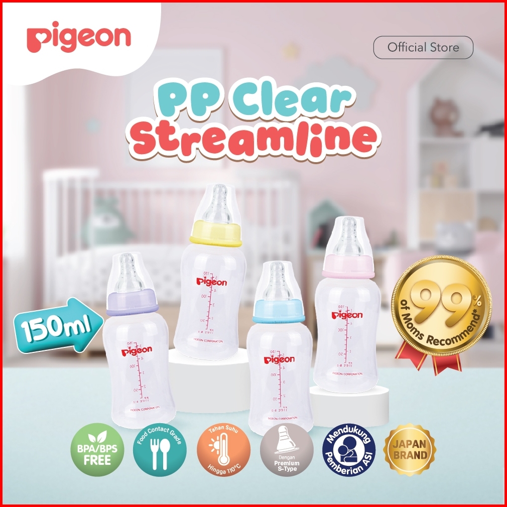 Pigeon Botol Pp Clear Streamline 150ml W S-type Nipple Dot Pilih Variasi Botol Susu Bayi Slim Neck Anti Kolik Nipple Dot