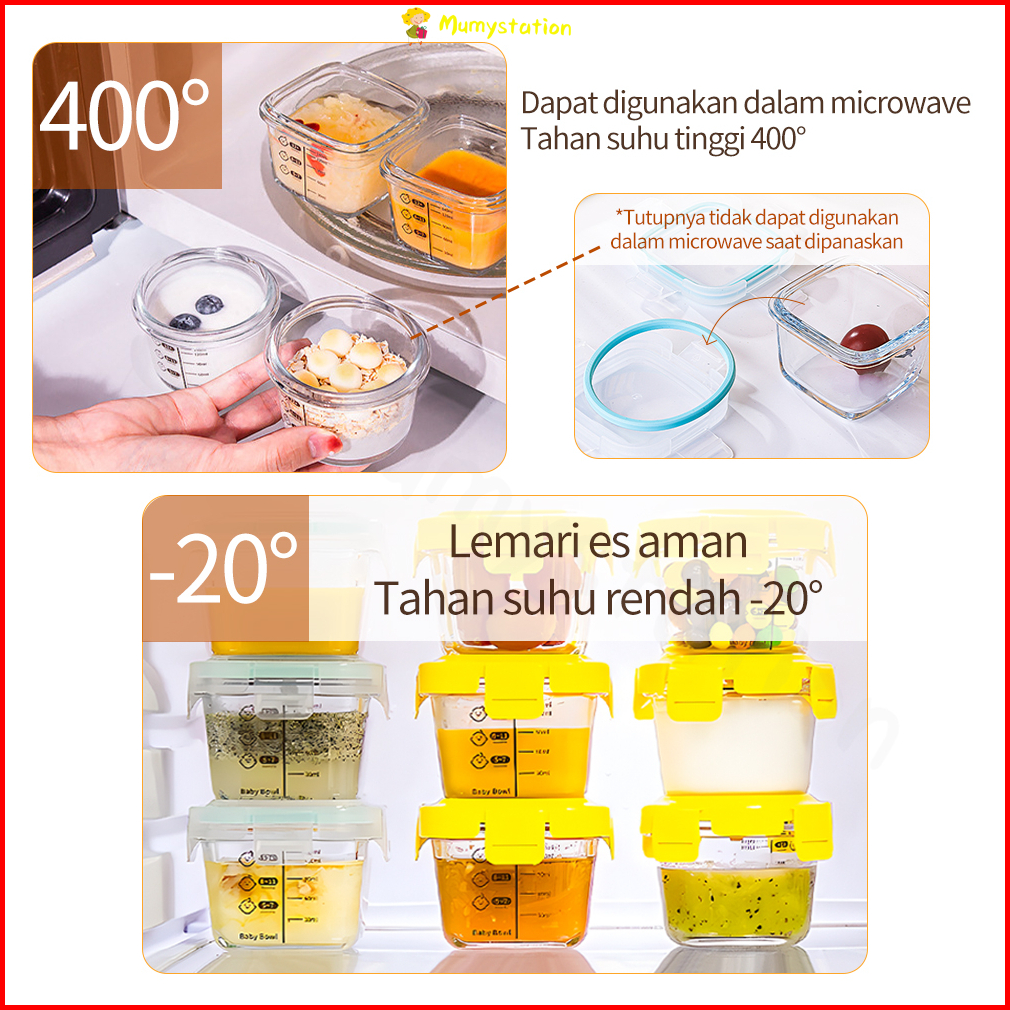 Mumystation Wadah Mpasi Kaca Penyimpanan Mpasi Glass Baby Food Container Mpasi Kaca Bpa Free