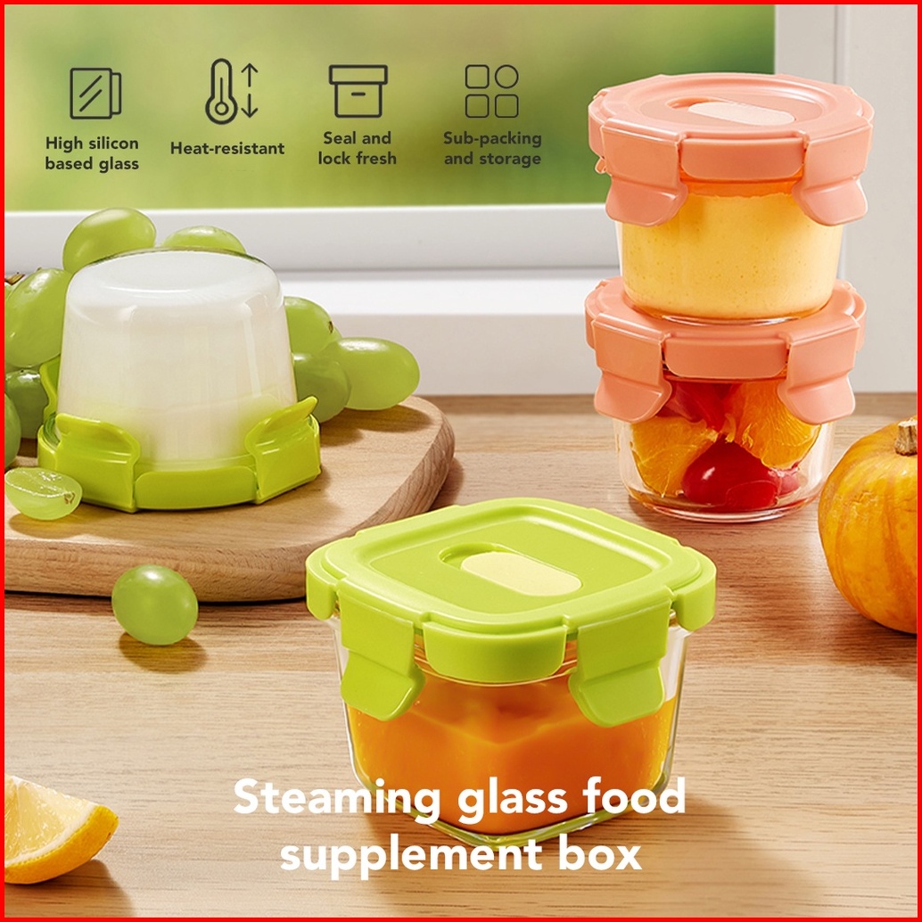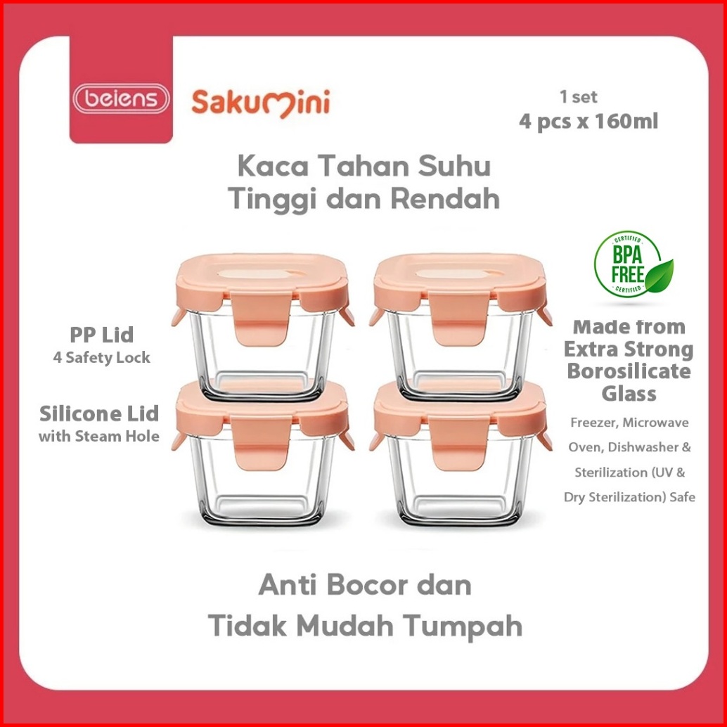 Beiens X Sakumini Food Container Glass Storage Jar Bowl Wadah Gelas Kaca Mpasi Bayi