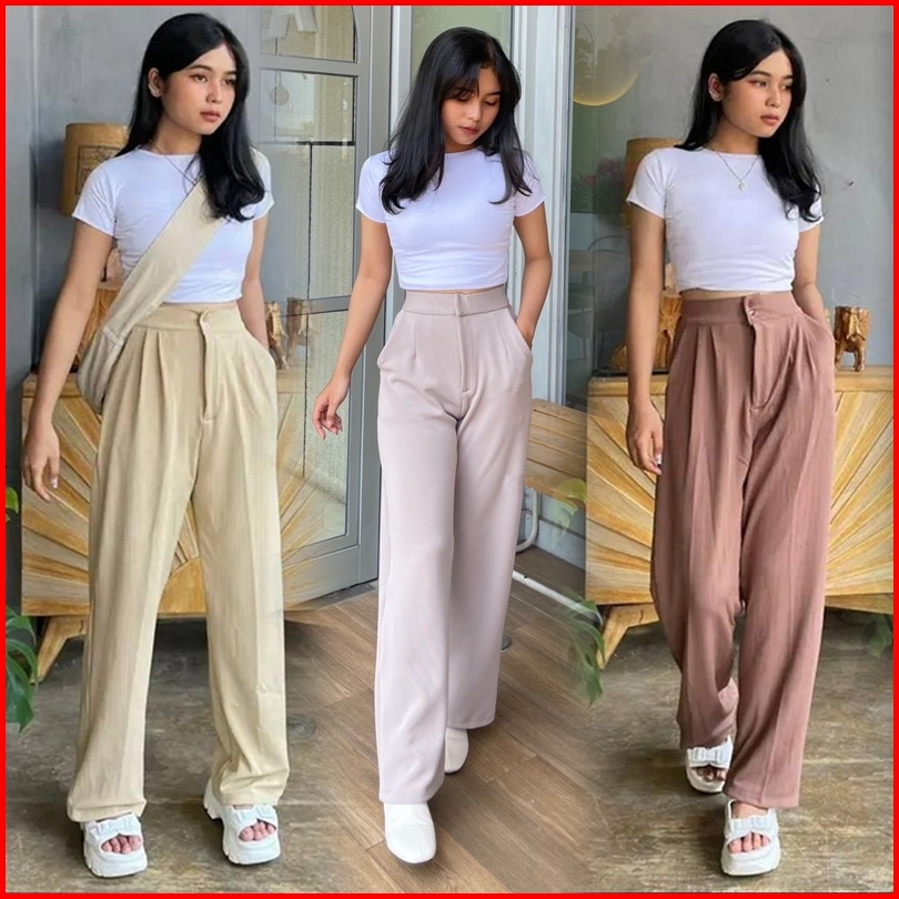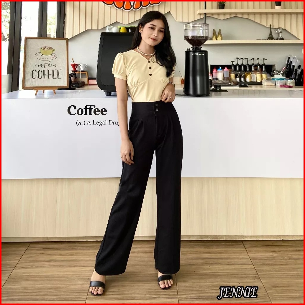 Celana Kulot Highwaist Daily Wanita Jennie Pants Knit Premium Cullote Highwaist Panjang Kekinian