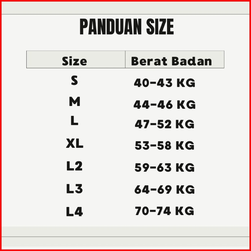 S, M, L, XL, XXL/L2 bb 60-65 kg, L3 ( bb 66-70 kg ), L4 ( bb 71-74 kg )