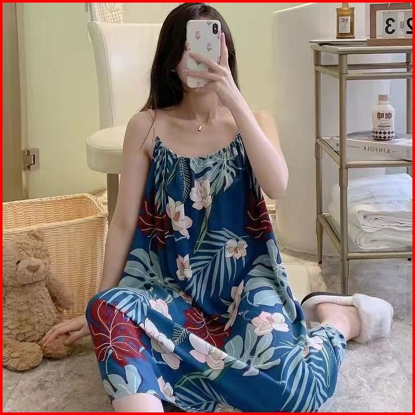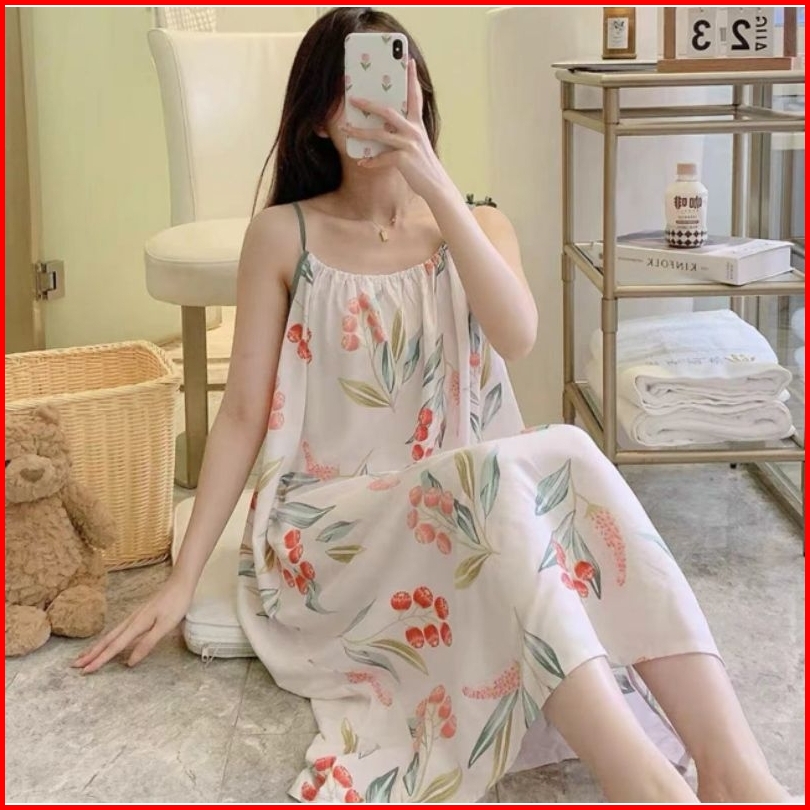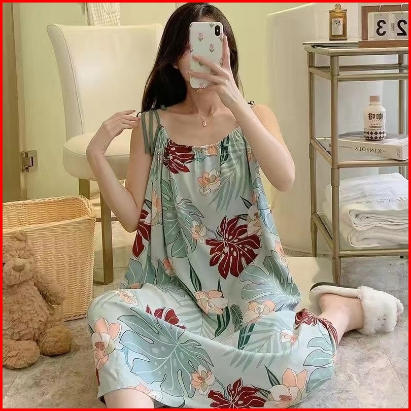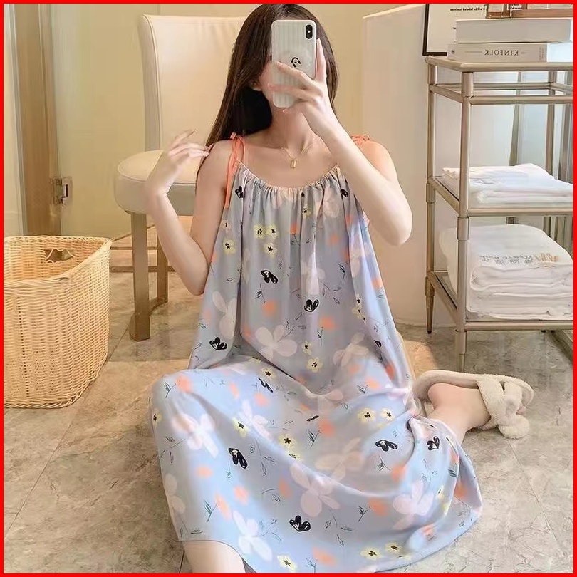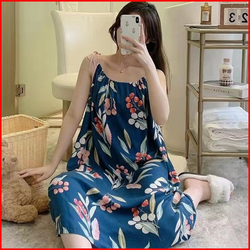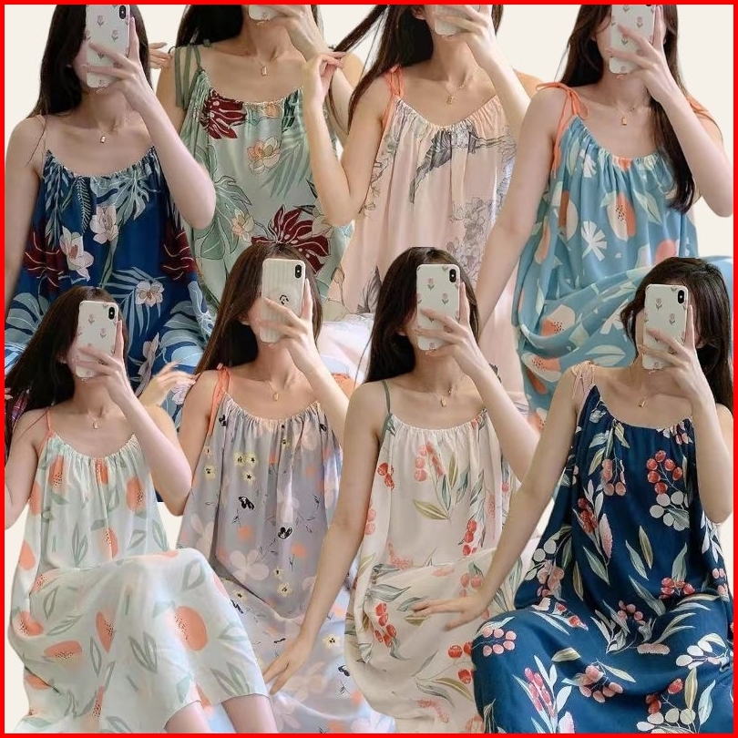 Rulif Daster Tanktop Tali Wanita Rayon Katun Impor Dress Santai Polos Motif Wanita Piyama Tanktop Wanita Baju Tidur Wani