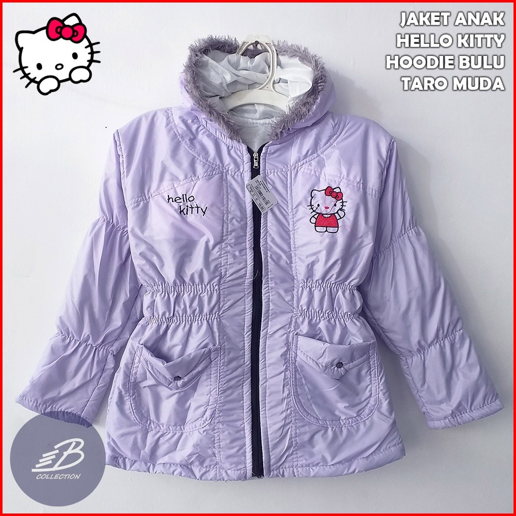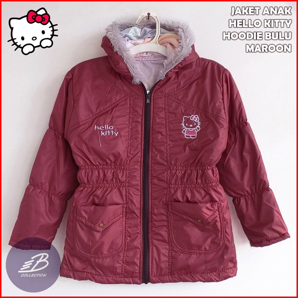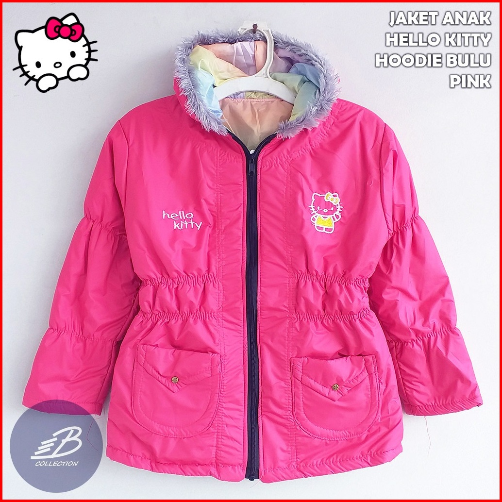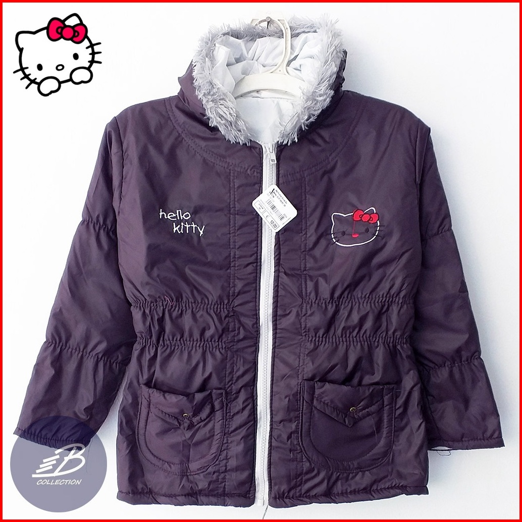 Jaket Hello Kitty Anak Perempuan Parasut Tebal Kerut Motif Bordir - Jaket Anak Cewek Hoodie Bulu Usia 3-10 Tahun