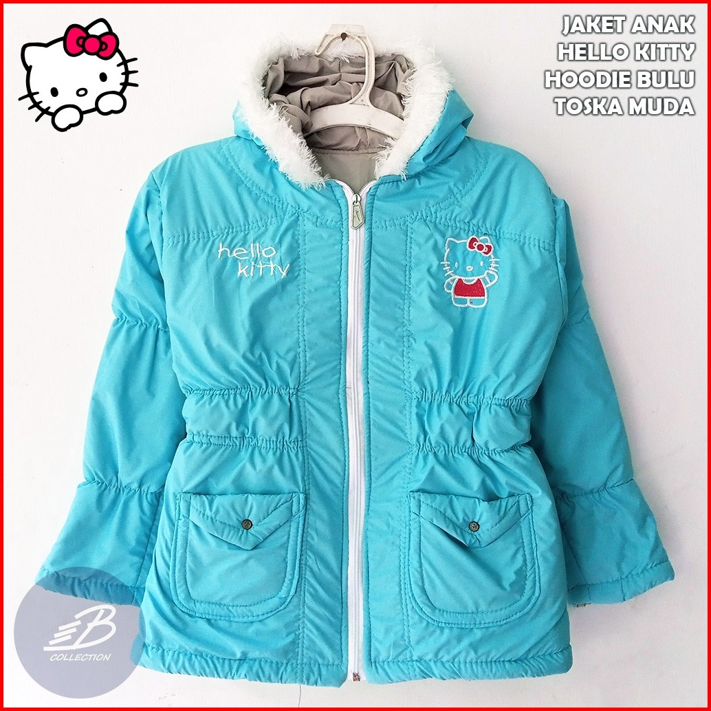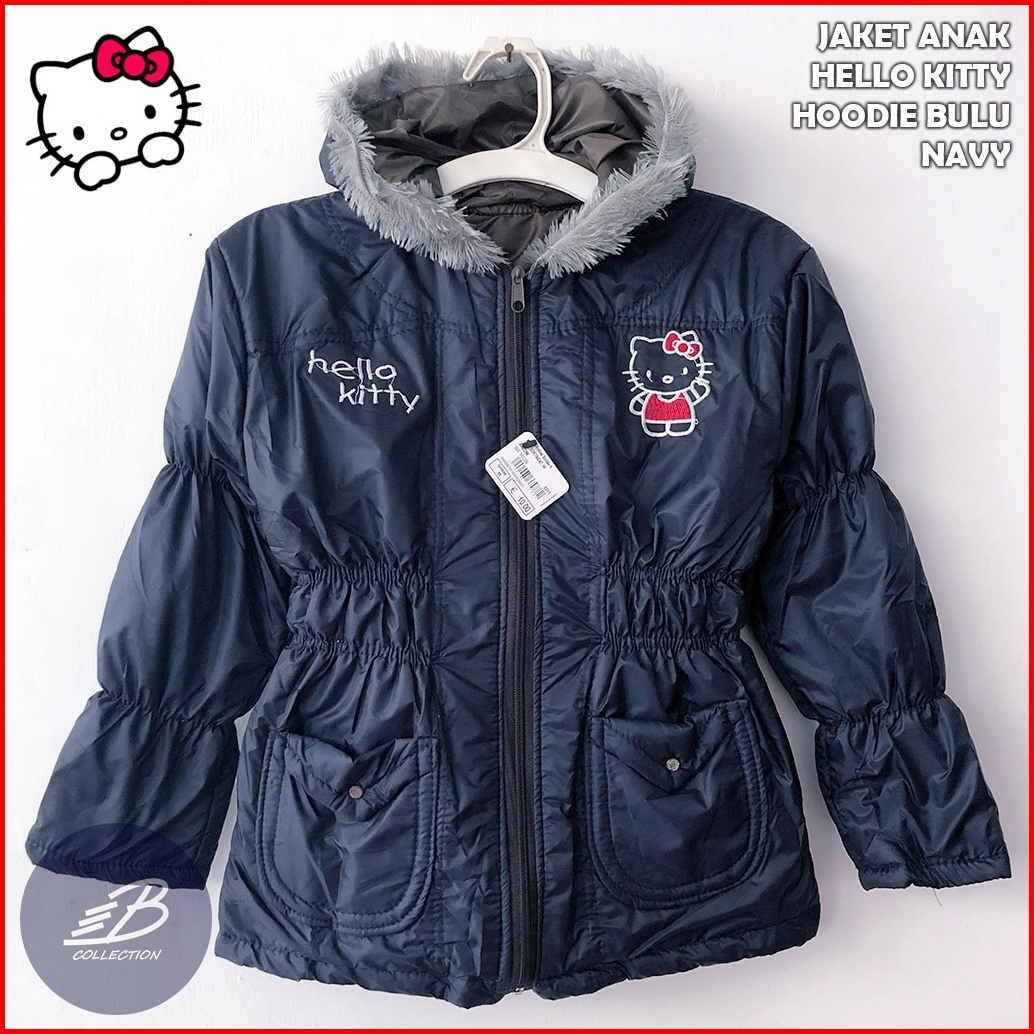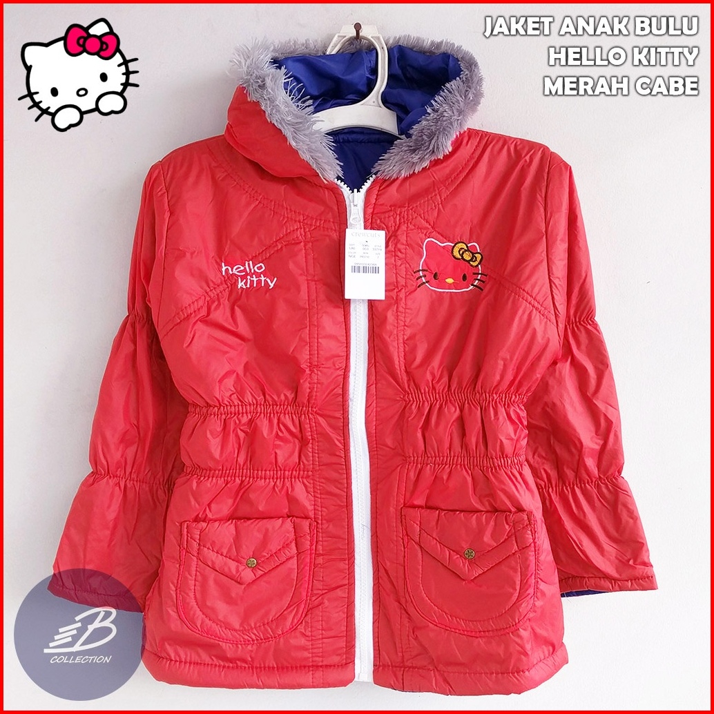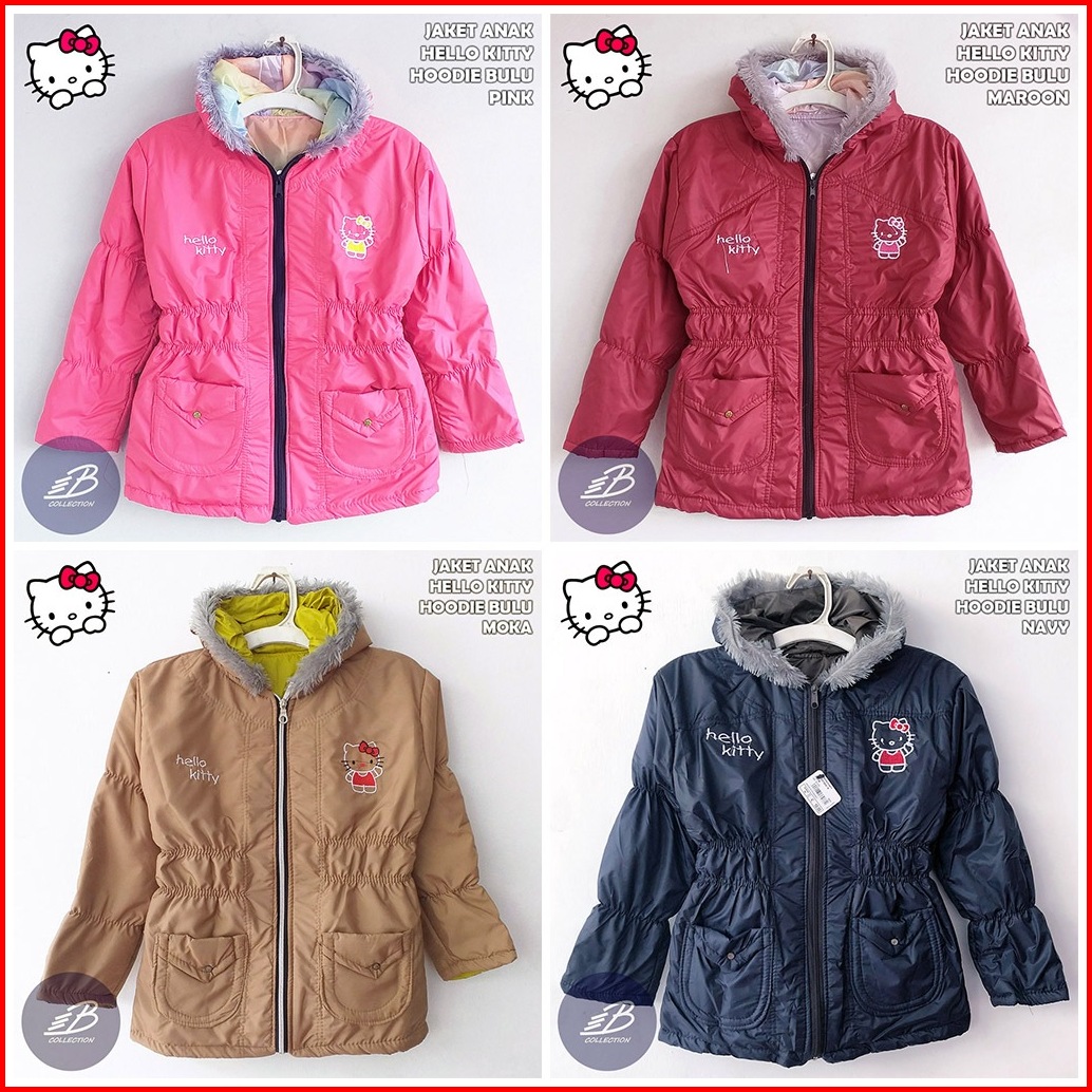 Jaket Hello Kitty Anak Perempuan Parasut Tebal Kerut Motif Bordir - Jaket Anak Cewek Hoodie Bulu Usia 3-10 Tahun