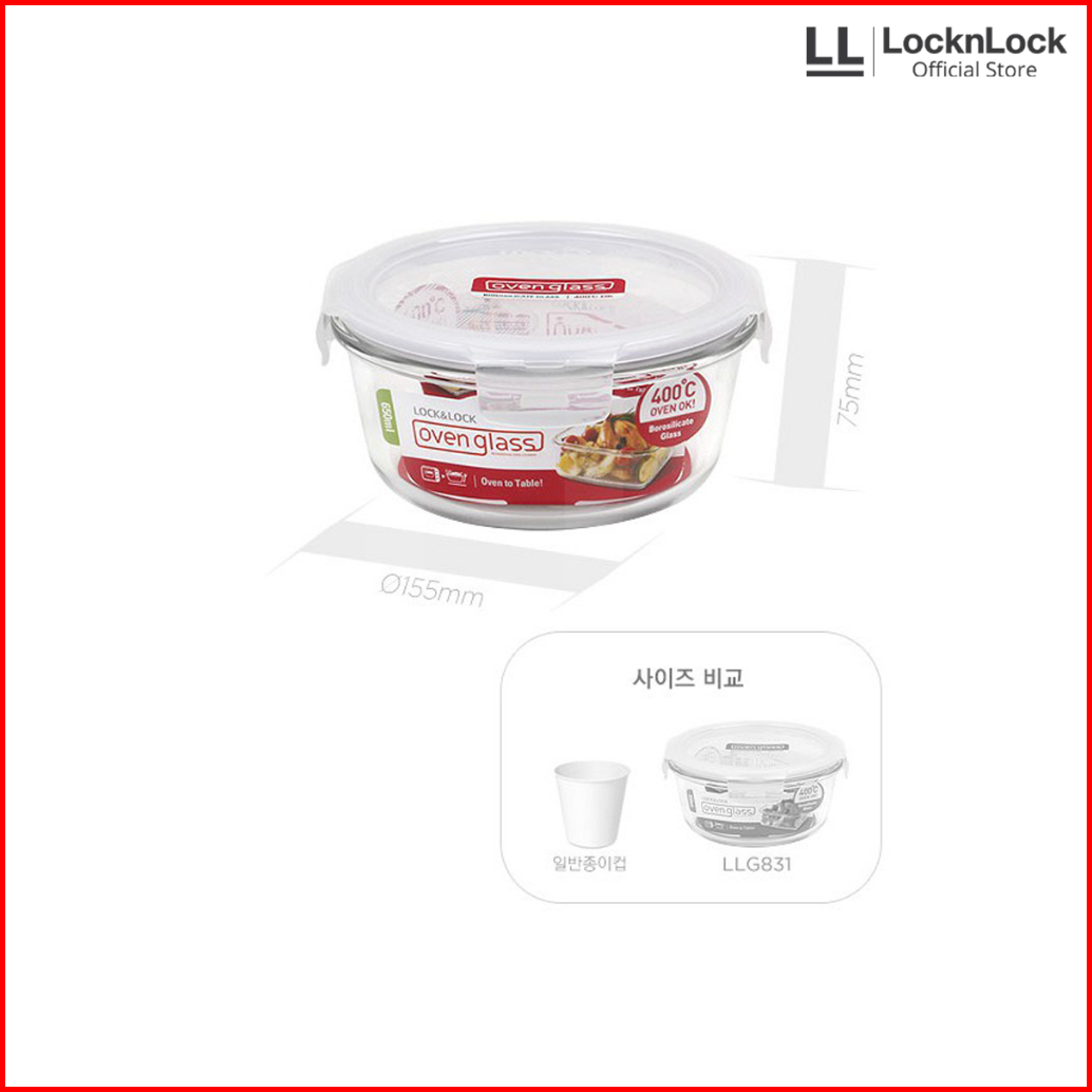 Locknlock Oven Glass Wadah Makan Rounded 650ml - Llg831