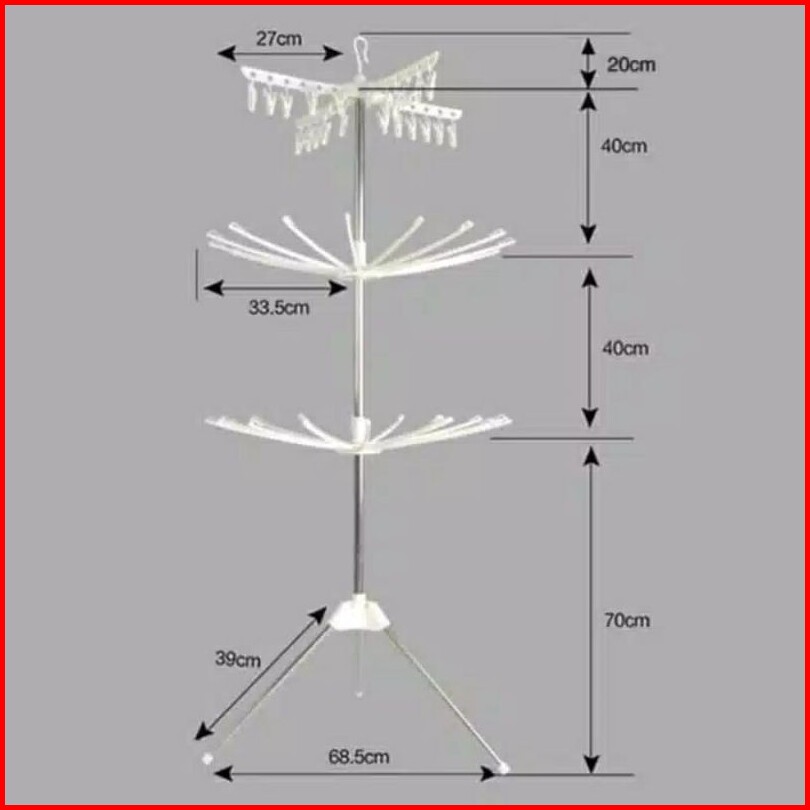 Jemuran Menara Baju Bayi 3 Susun Tripod Dengan Hanger Rotasi