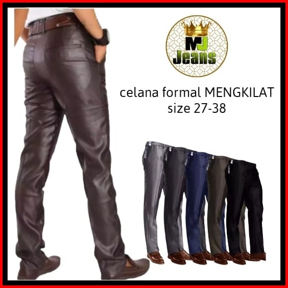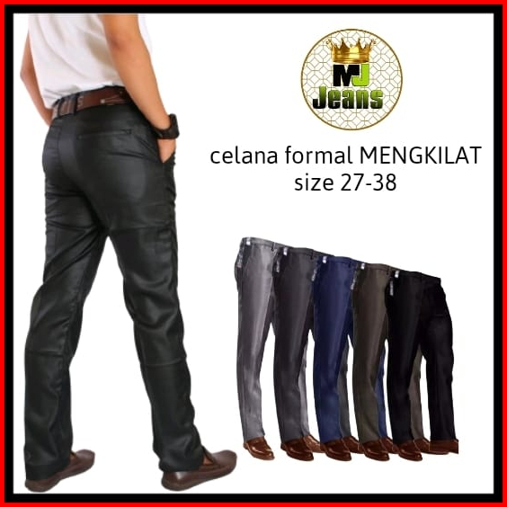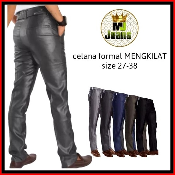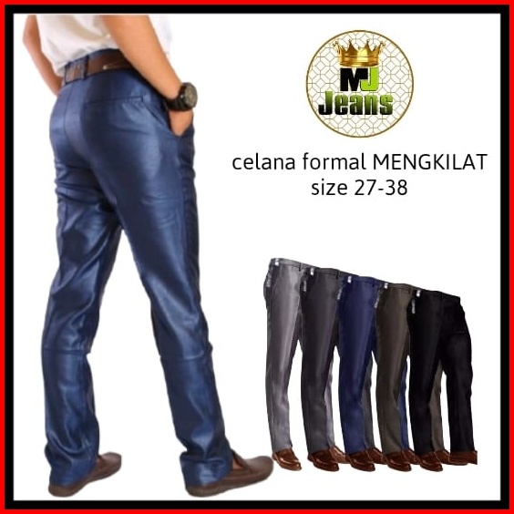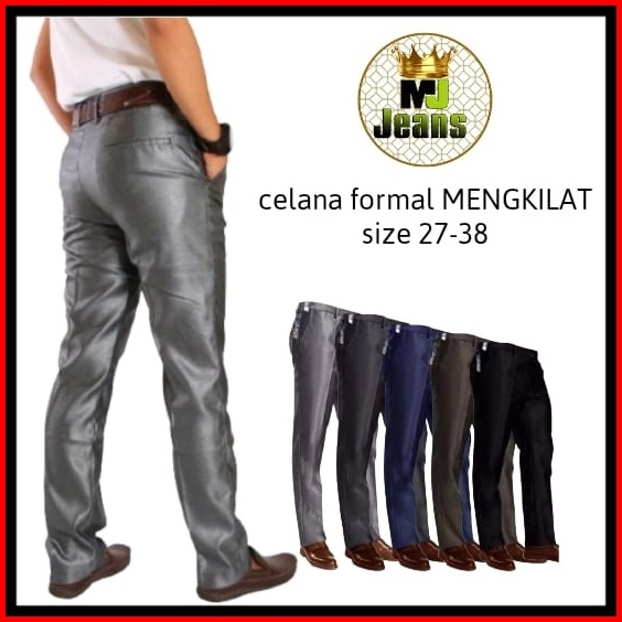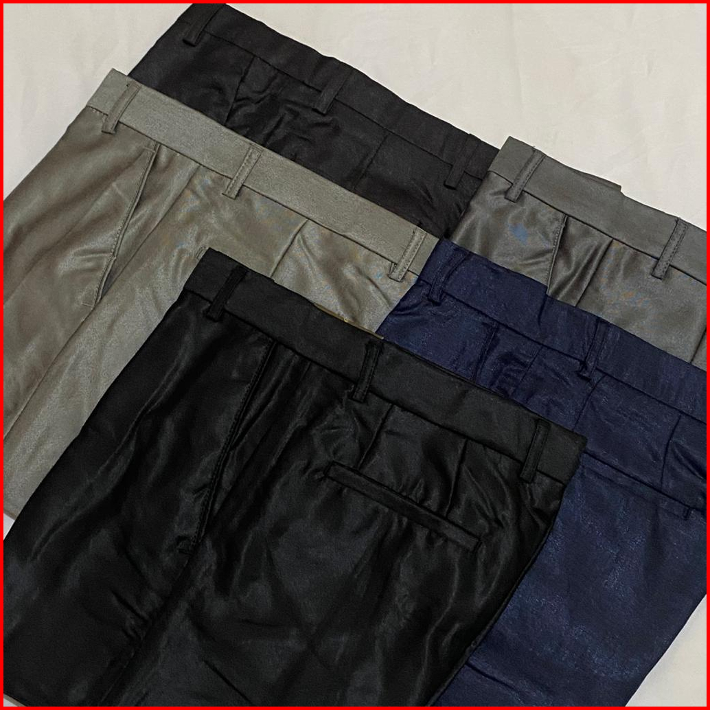 Celana Formal Pria Dasar Mengkilap Metalik Slimfit Kantor Kerja Panjang