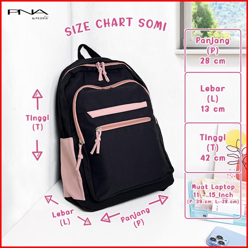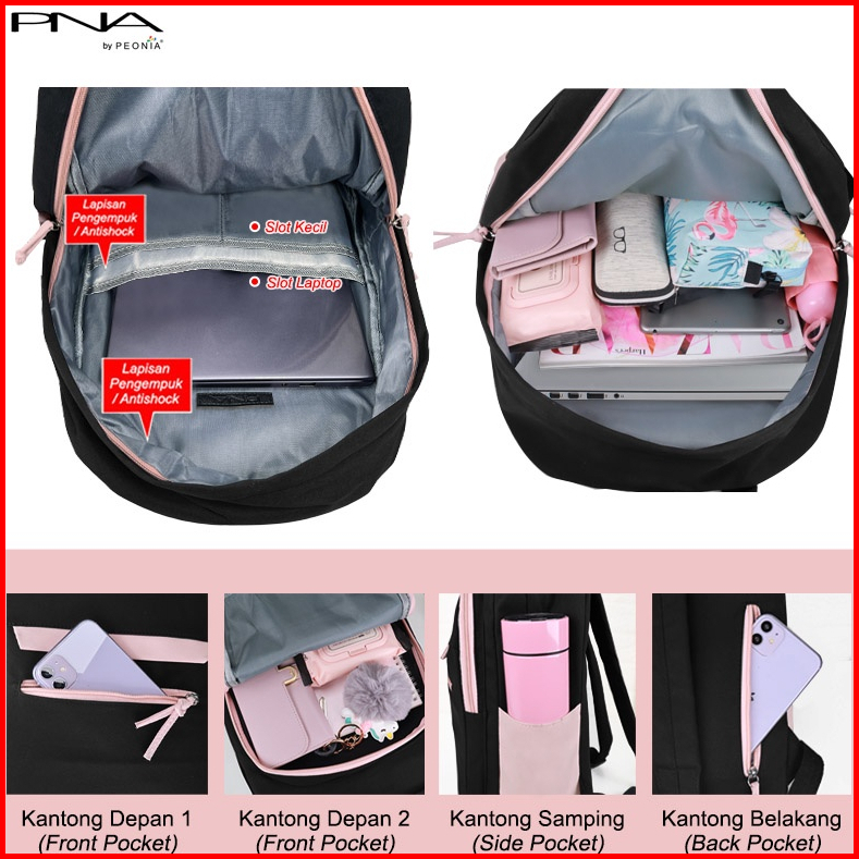 Peonia Pna Somi Water Resistant Tas Ransel Wanita Import Korean Style Extra Besar Wanita Pria Unisex Laptop Backpack Pun