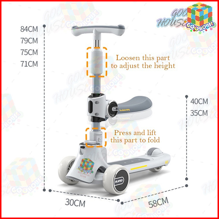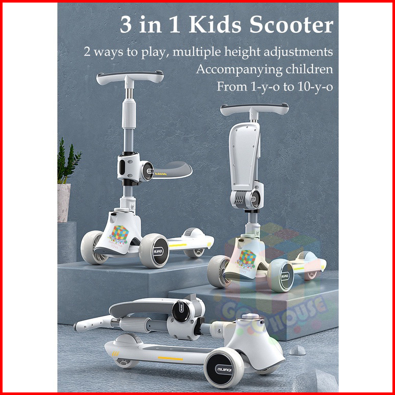 Skuter Anak 3 In 1 Skuter Anak Perempuan Skuter Lipat Scooter Anak Musik Skuter Anak Kids Scooter