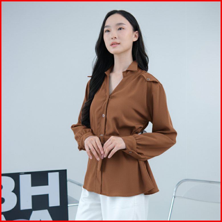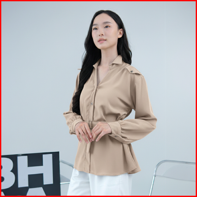 Reva Kemeja Wanita Lengan Panjang Model Korean Style Kekinian Modis Nyaman Ukuran M L Xl Xxl