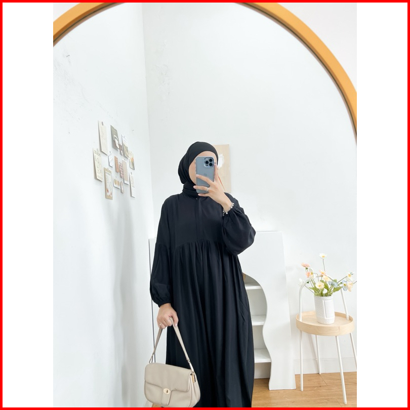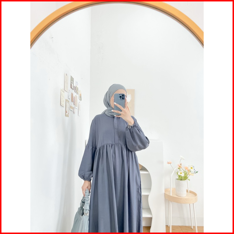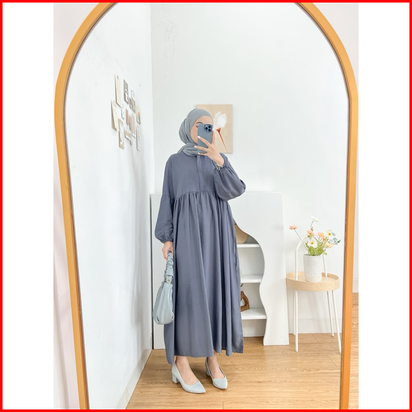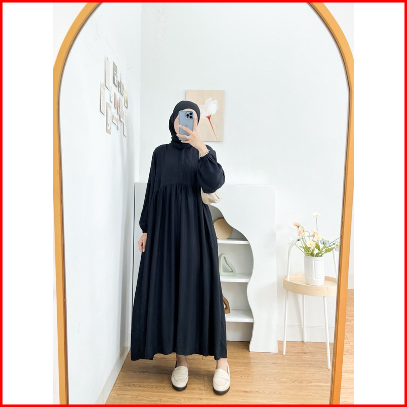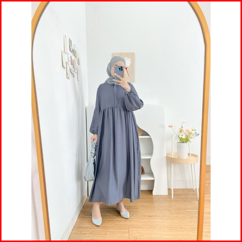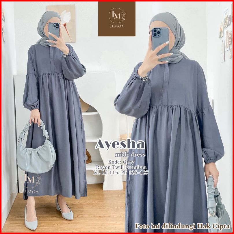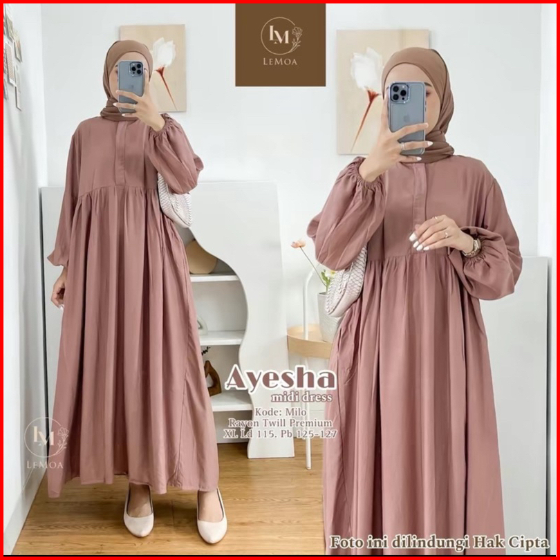 Ayesha Midi Dress Polos Lengan Balon By Lemoa Ld 115 Pb 127 Bahan Rayon Twill Premium Tebal Midi Panjang Wanita Daster A