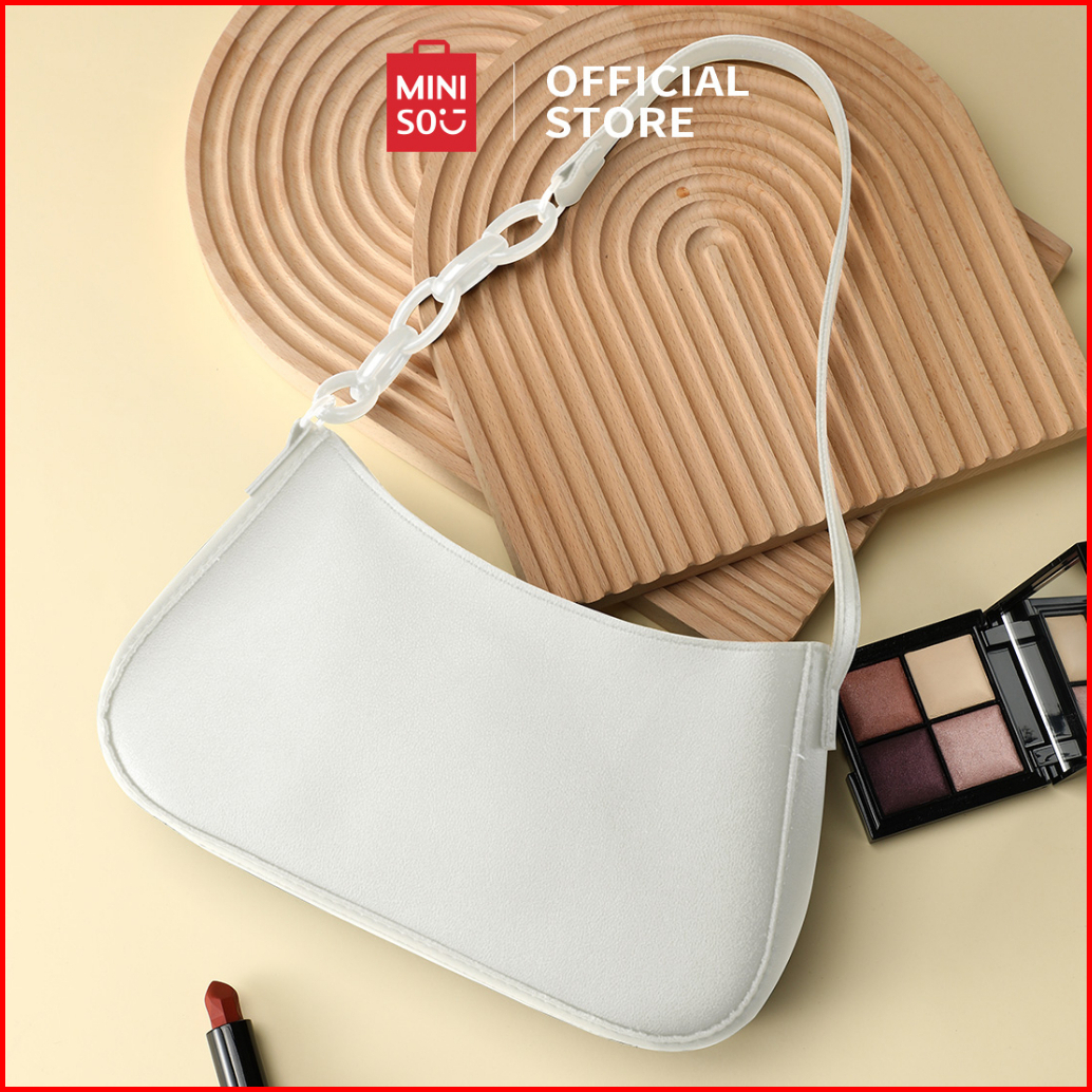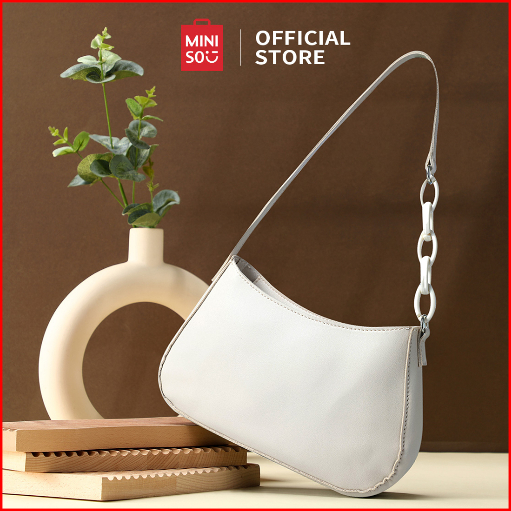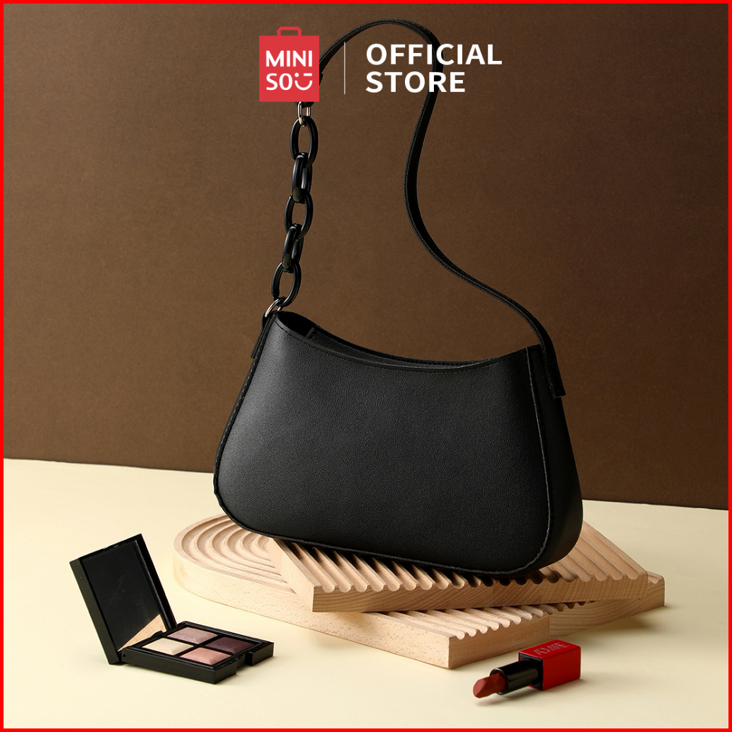 Miniso Tas Wanita Hitam Shoulder Bags Tas Pundak Ritsleting Tali Rantai Fashion Muda Kapasitas Tinggi