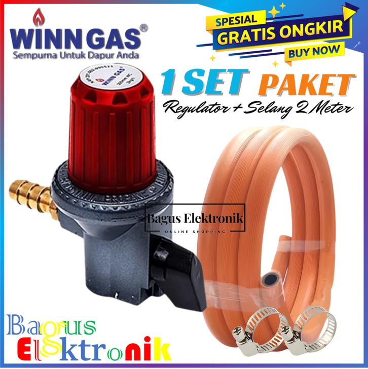 Regulator Winn Gas W 181 NM+Selang Gas Oren 2 Meter+2 Pic Klem Gas Auto Tekanan Tinggi Regulator Gas High Pressure