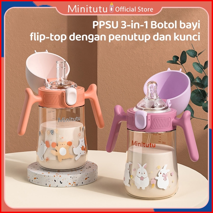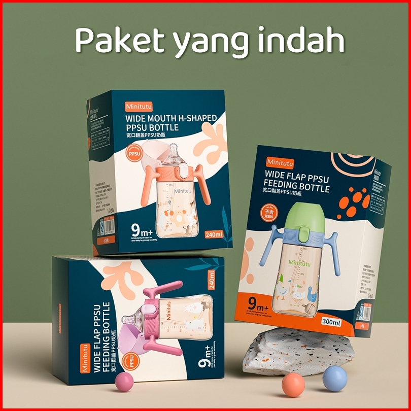 Minitutu 300ml 240ml Botol Minum Bayi Botol Susu Anak 1 Tahun Botol Susu Bayi Bahan Pp Ppsu 3in1 Leher Bebas Dengan Bola