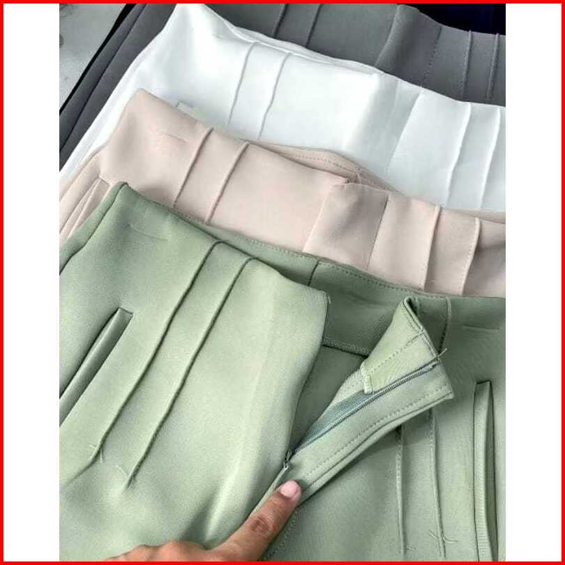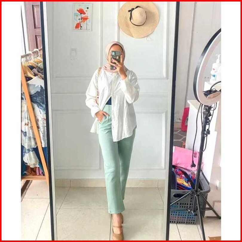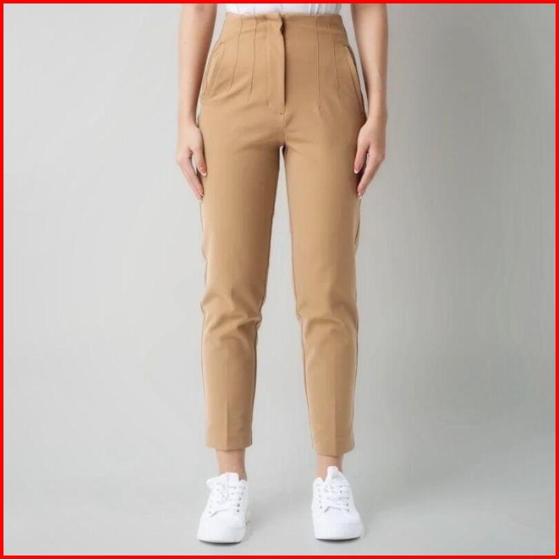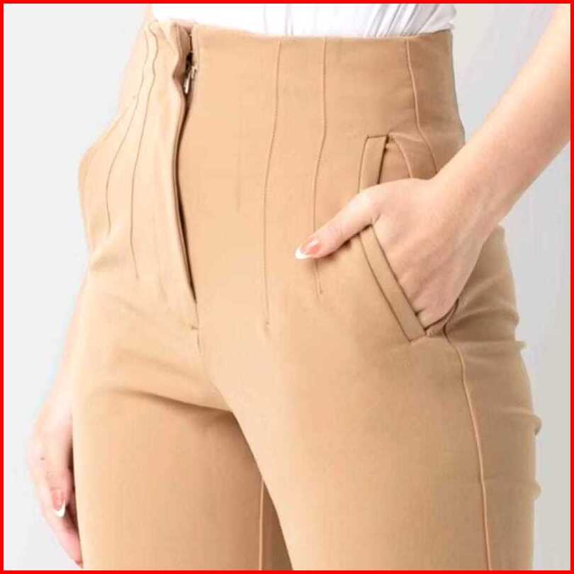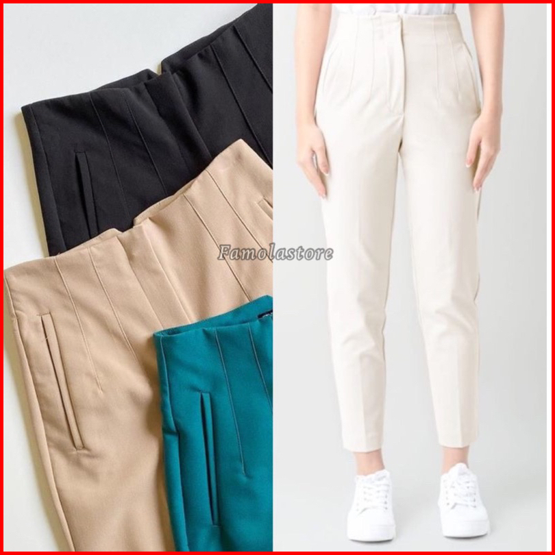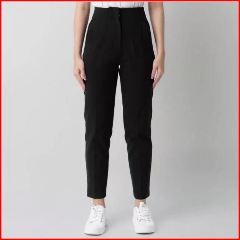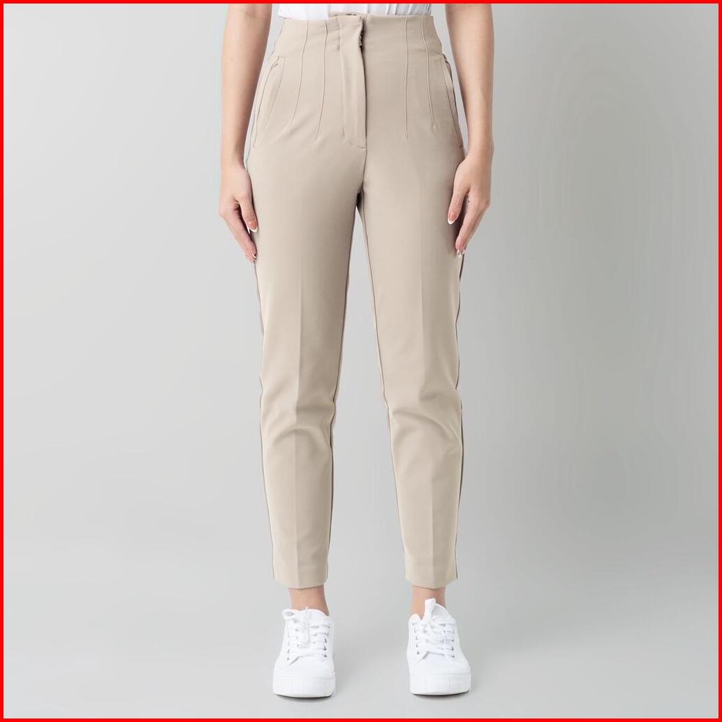 Aerum Higwaist Scuba Celana Kerja Wanita Pensil Slim Saku Paspol Baggy Pants