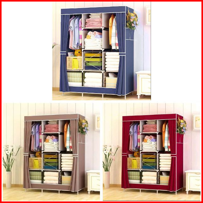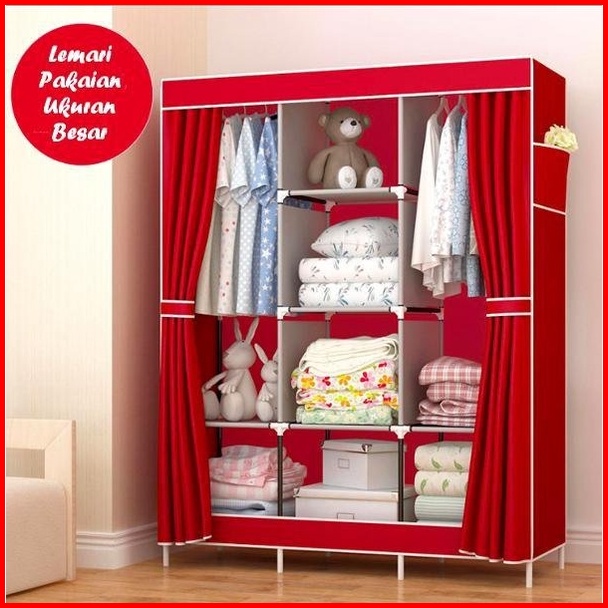 Lemari Pakaian Kain Portable 3 Sisi Premium Rak Serbaguna Lemari Pakaian Plastik Portable Jumbo