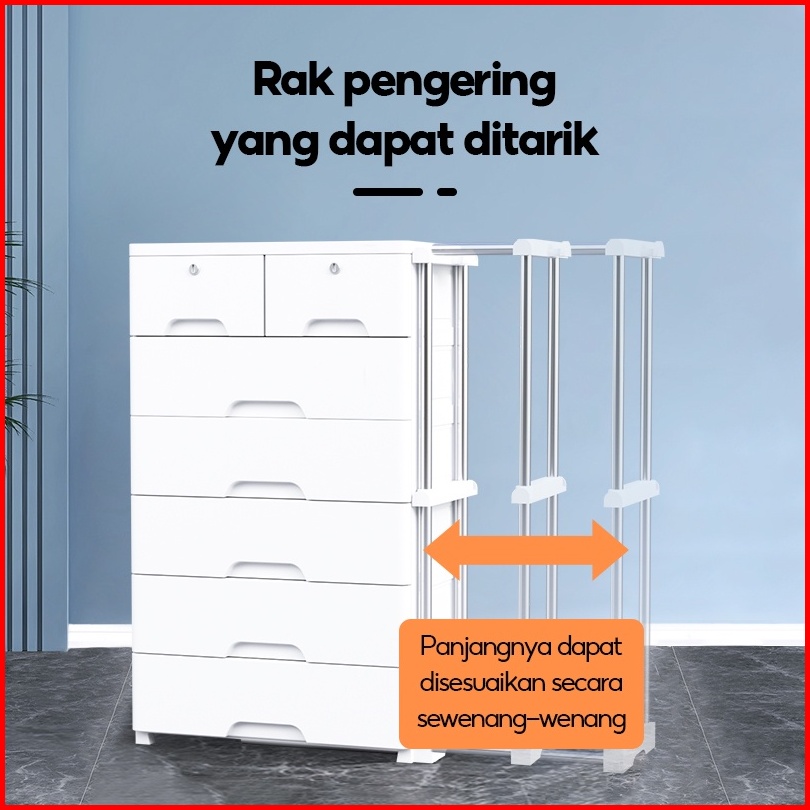 Kuca Lemari Plastik Loker Plastik Lemari Pakaian Laci Kabinet Drawer Storage Cabinet Tabung Baja Lemari Baju Gantung Rak