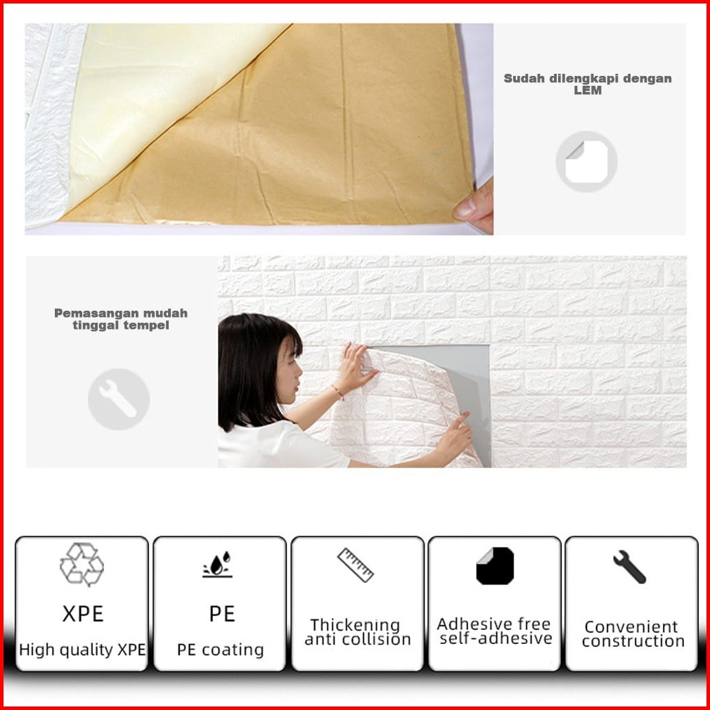 Paket 10pcs Wallpaper Dingding 3d Foam Motif Batu Bata 70 X 77 Cm Dekorasi Dinding Kamar Murah