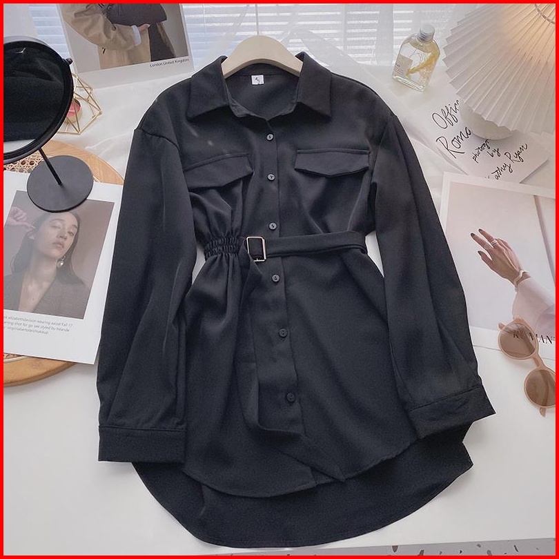 Ervia Atasan Kemeja Wanita Casual Lengan Panjang Korean Style Modis Kekinian Nyaman Stylish