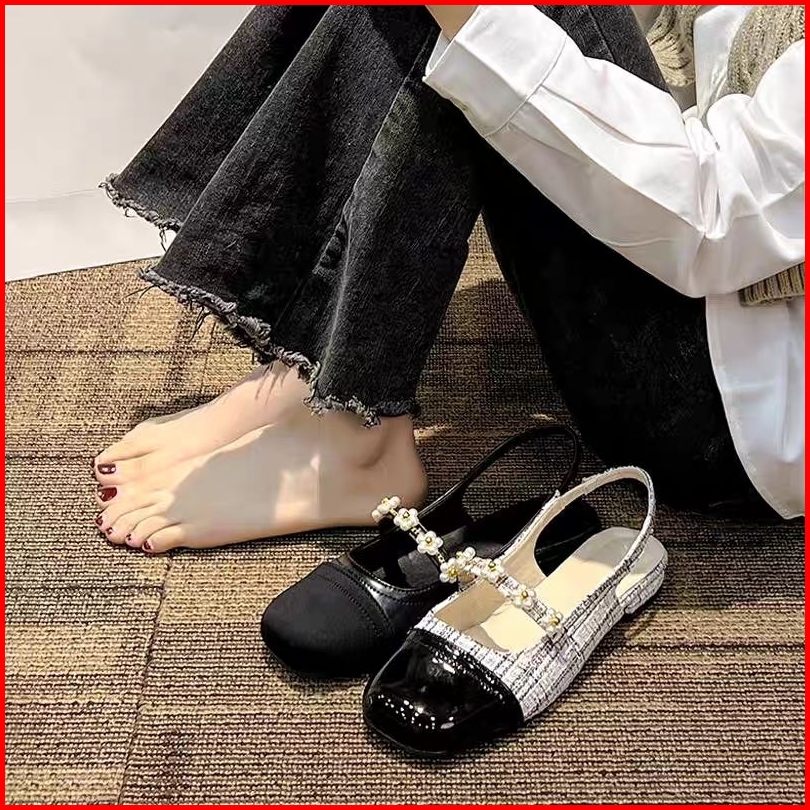 Nf2616 - Sandal Flat Shoes Motif Bunga Fashion Kekinian Sandal Flat Shoes Terbaru Sandal Terlaris