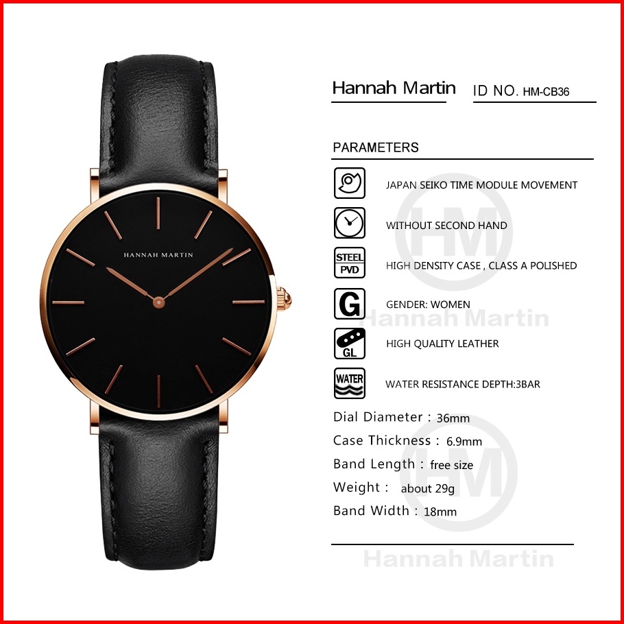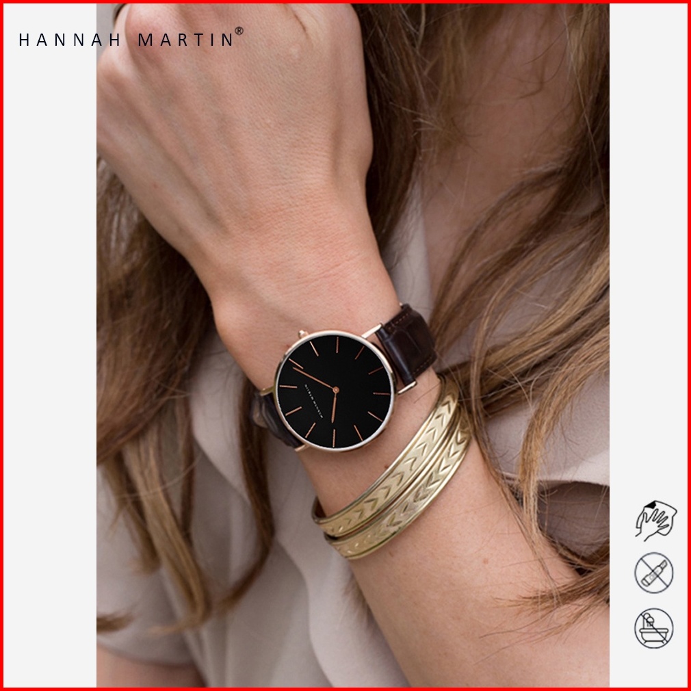 Hannah Martin Jam Tangan Wanita Sangat Tipis 100 Original Fashion Kecil Simple Jam Cewek Quartz Kulit Anti Air Murah Arl