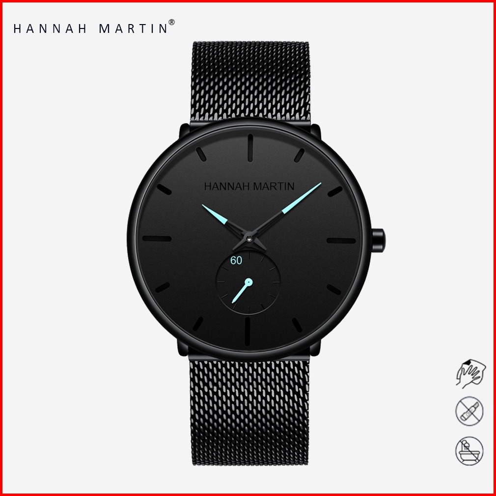 Hannah Martin Jam Tangan Pria Sangat Tipis 100 Original Korea Fashion Cowok Anti Air Quartz Arloji Simple Men Watch 100g
