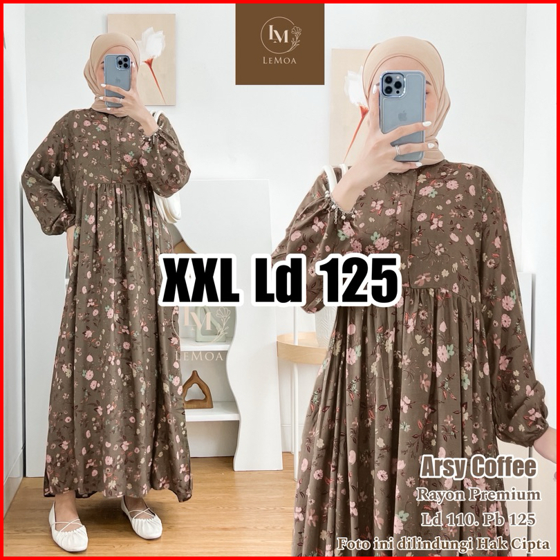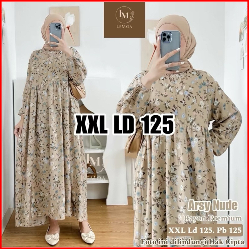 Xxl Ld 125 Arsy Midi Series By Lemoa Dress Jumbo Rayon Premium Motif Gamis Muslim Wanita