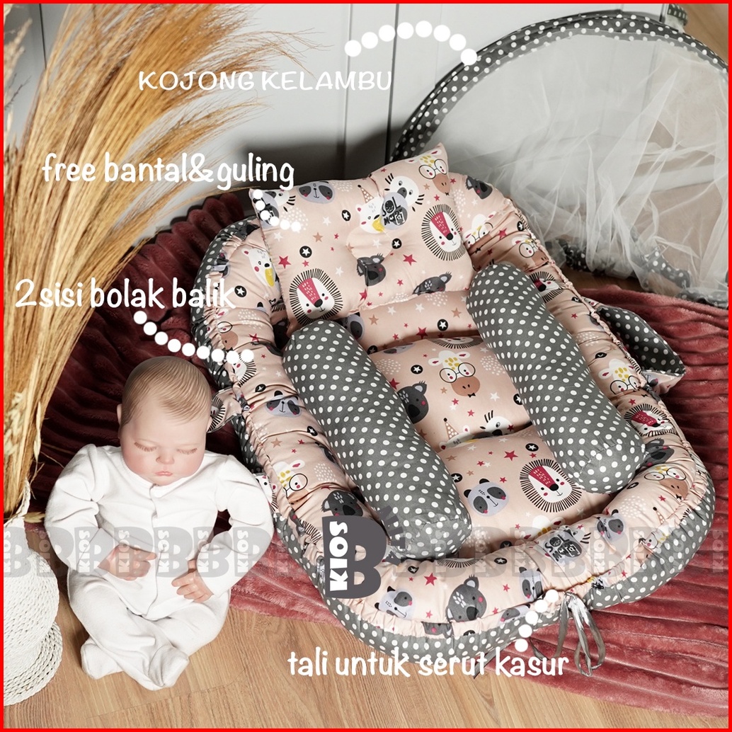 Kasur Bayi Baby Nest Premium Dengan Kelambu Free Bantal Peyang Dan Guling Bayi Bisa 2 Sisi Motif Bolak Balik