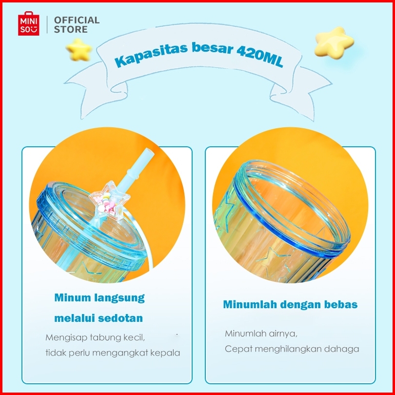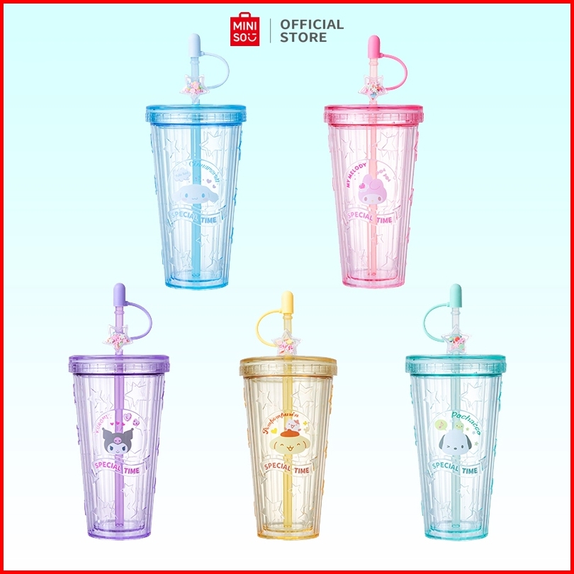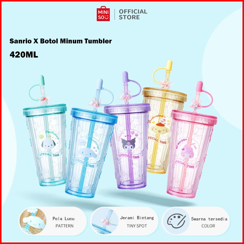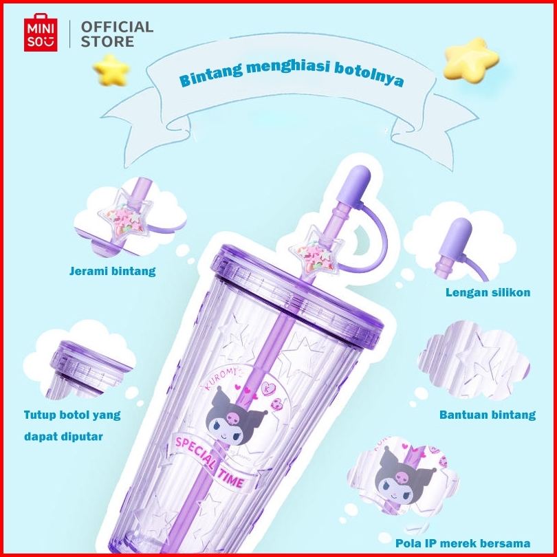 Miniso X Sanrio Botol Minum Tumbler 420ml Botol Minum Anak Sanrio Summer Star Twinkling Straw Cup