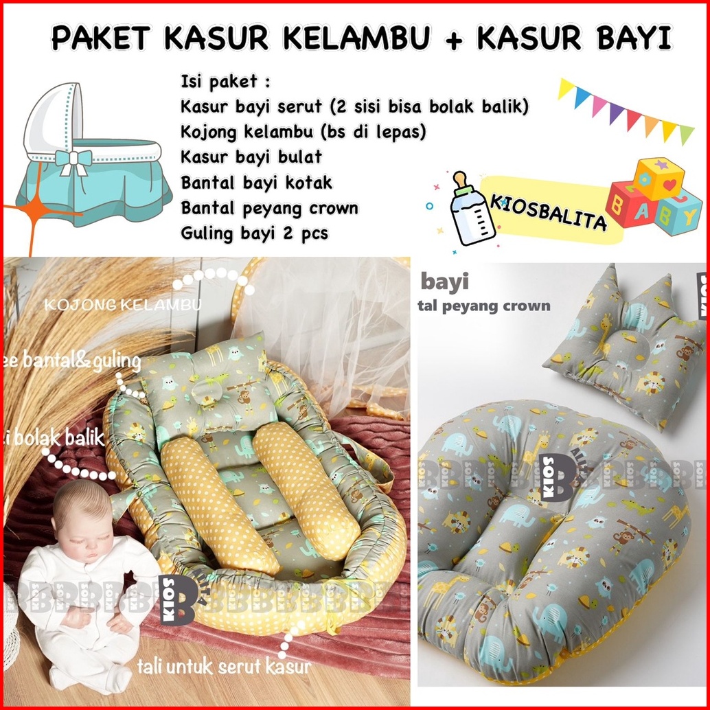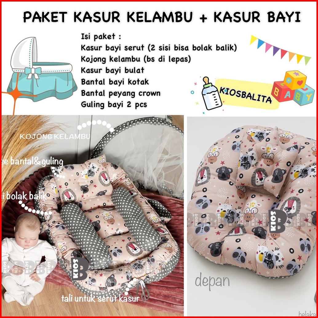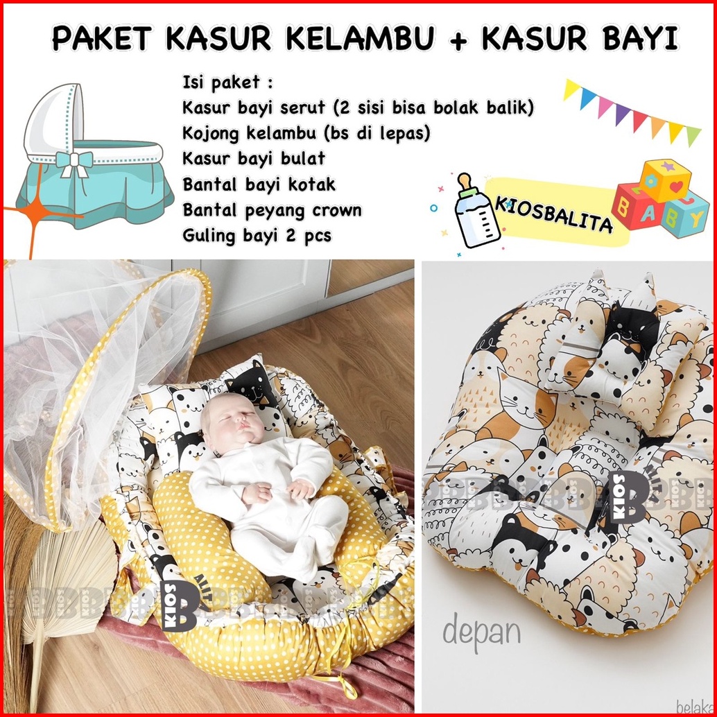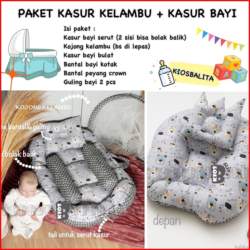 Paket 2in1 Kasur Bayi Baby Nest Serut Kelambu Kasur Bayi Sofa Bayi Free 2 Bantal 2 Guling Bayi