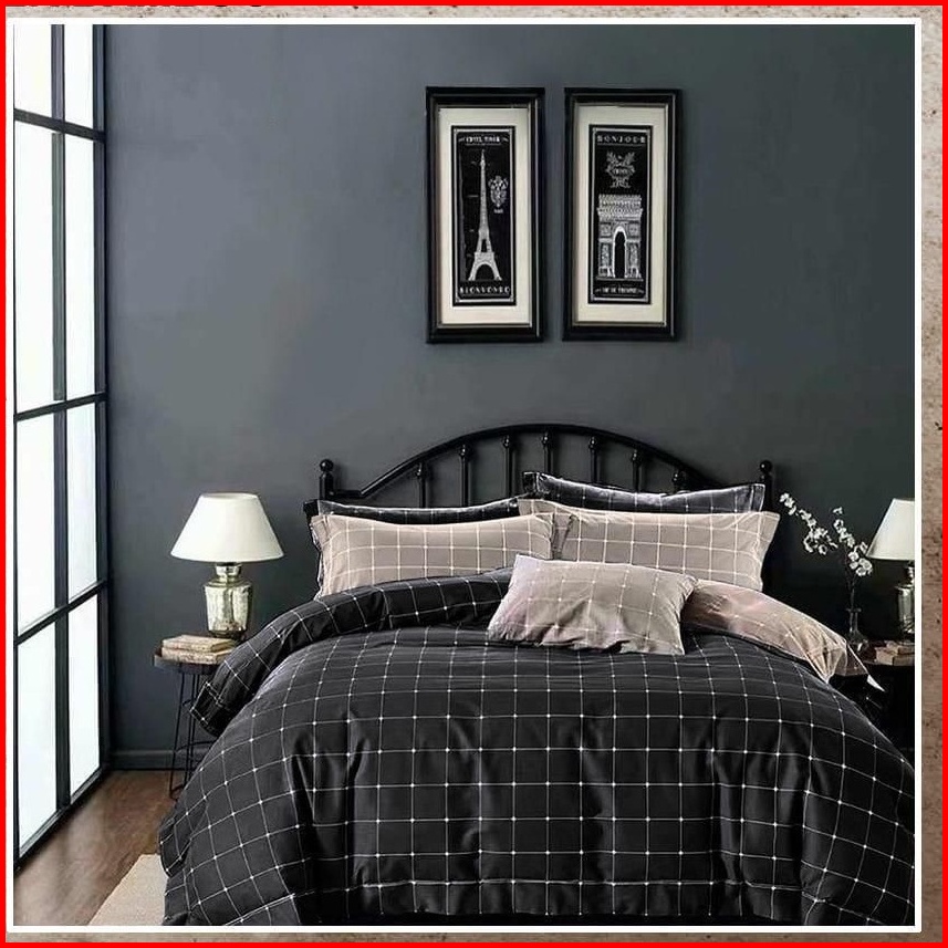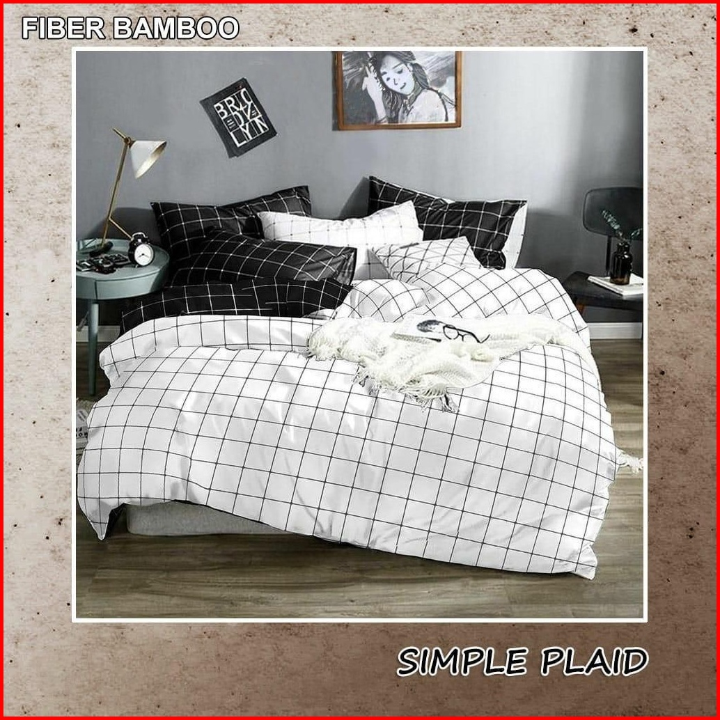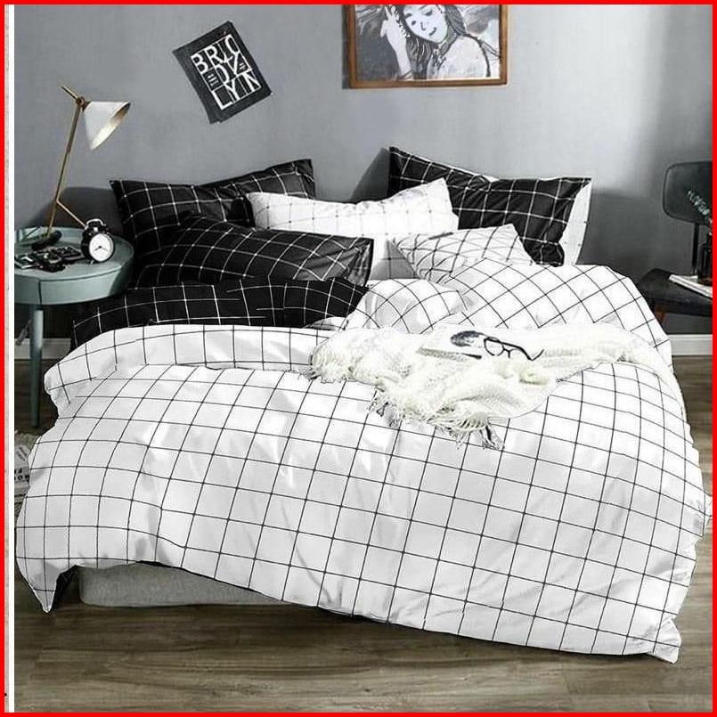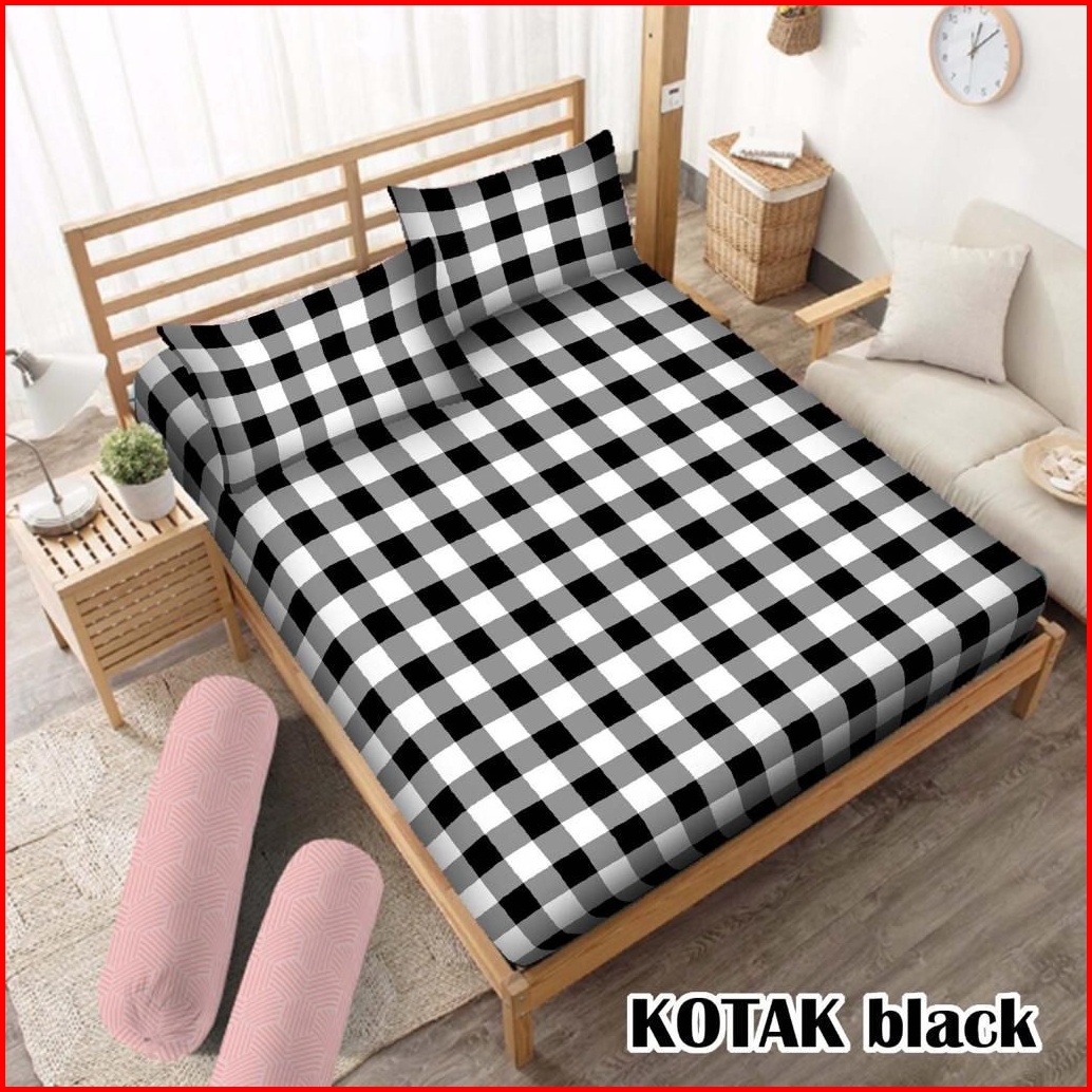 Sprei Motif Ukuran 180x200 160x200 120x200 Abstark Daun Kotak Hitam Putih Abu Biru