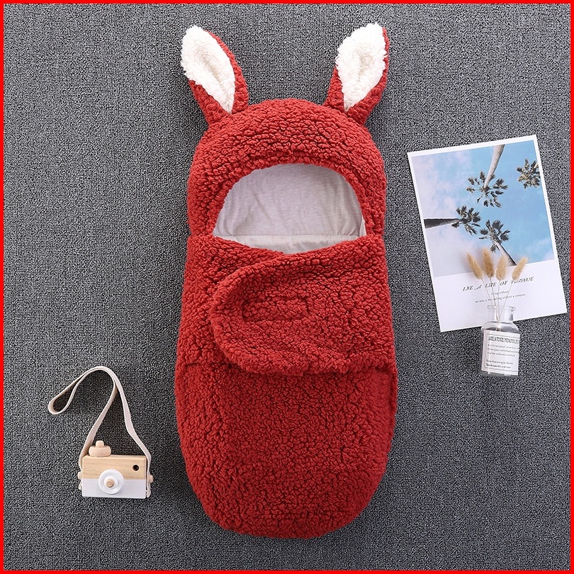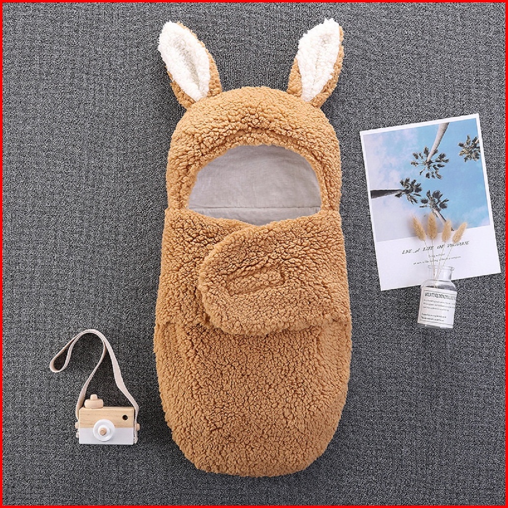 Selimut Bedong Bayi Praktis Lucu 0-1 Tahun Bahan Bulu Domba Motif Kelinci