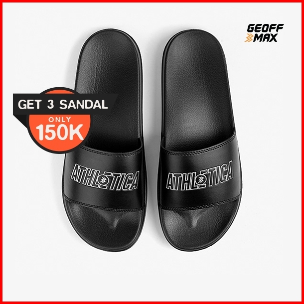 Athletica - Outline Black Sandal Pria Wanita Sendal Slop Slipper Anti Licin