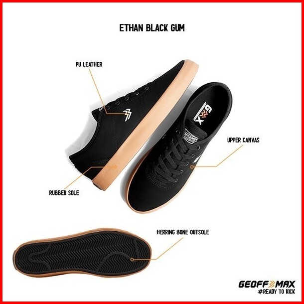 Geoff Max - Ethan Black Gum Sepatu Pria Wanita Sneakers Casual Sekolah Kuliah