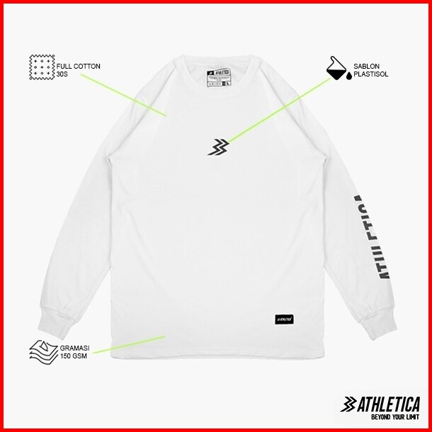 Athletica - Asertive Long Sleeve White Baju Kaos Pria Wanita Tshirt Lengan Panjang Unisex