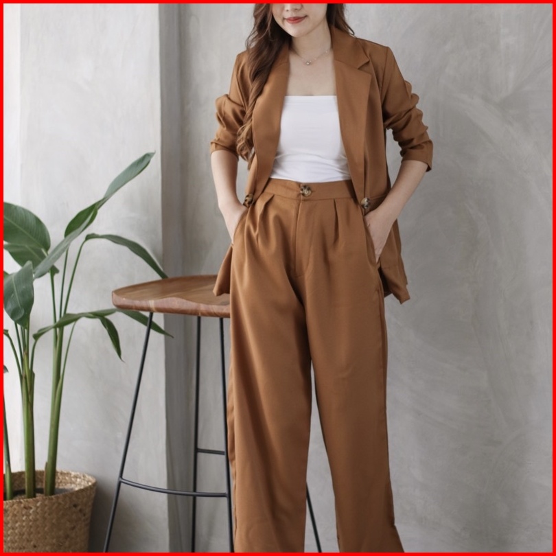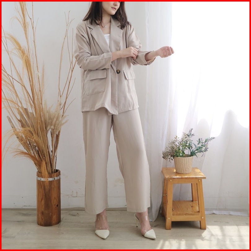Msmo Set Long Blazer Culotte Set Wanita Setelan Wanita Blazer Wanita Set Blazer