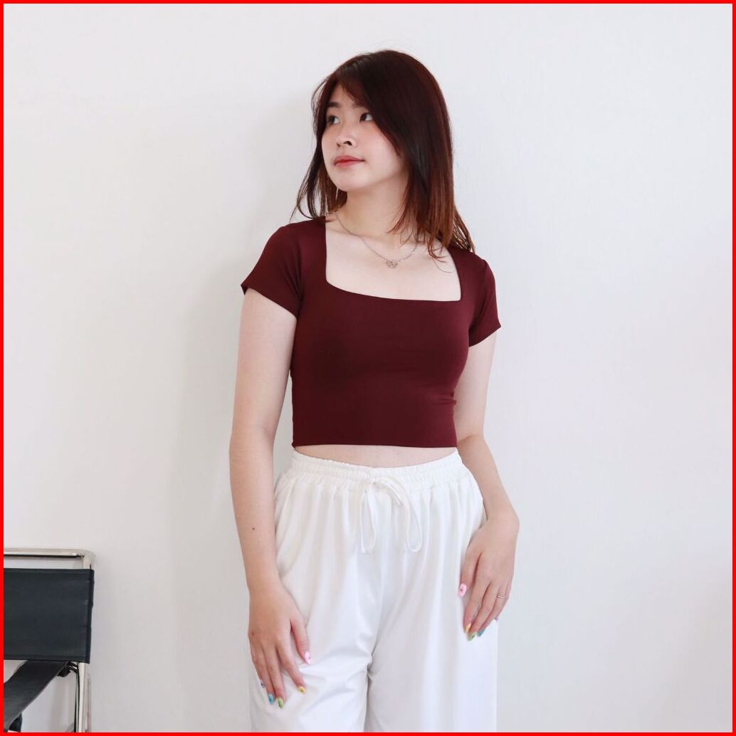 Msmo Sassy Square Sleeve Croptop Atasan Wanita Blouse Wanita Kaos Wanita Top Wanita