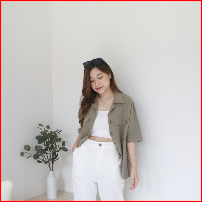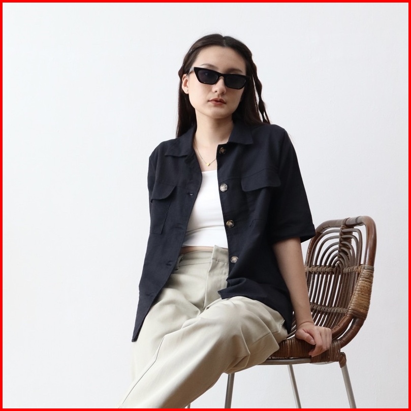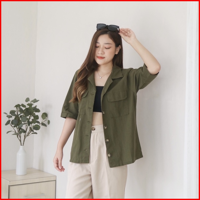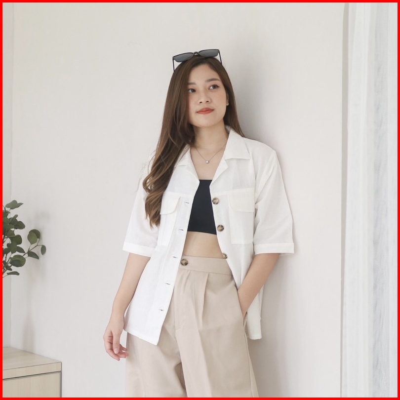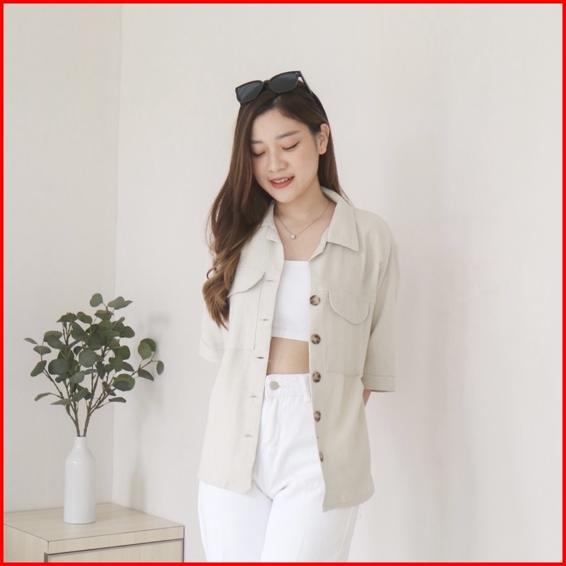 Msmo Somi Oversized Linen Shirt Outer Atasan Wanita Kemeja Wanita Kemeja Linen Top Wanita Linen Shirt