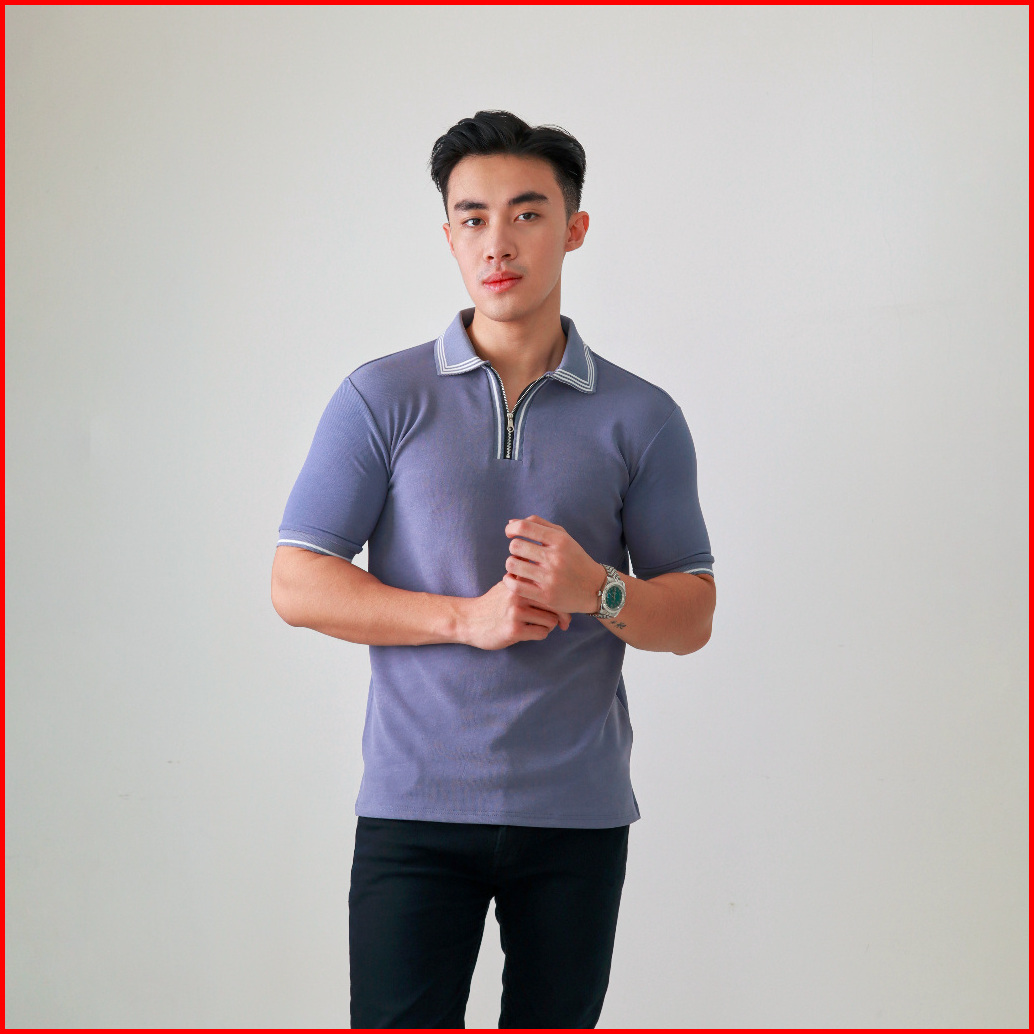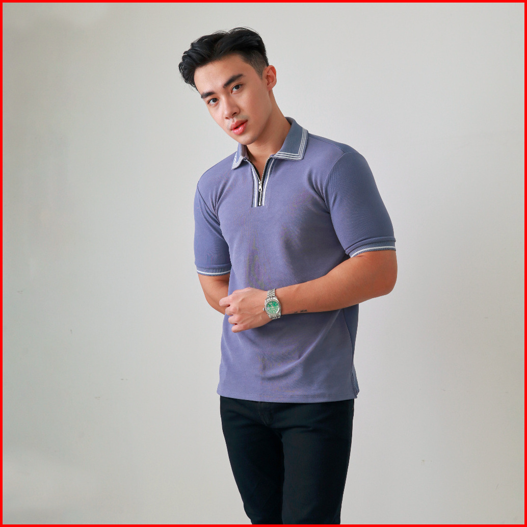 Msmo Men Romero Kaos Polo Shirt Pria Kaos Kerah Lengan Pendek Zipper