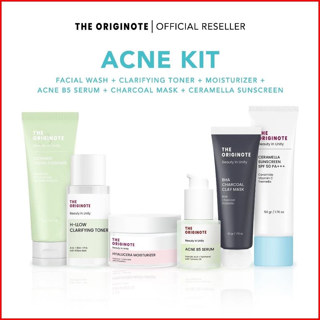 Special Bundle 6in1 The Originote Kit Facial Wash Toner Serum Moisturizer Sunscreen Masker Wajah Acne Kit Glowing Kit Ba