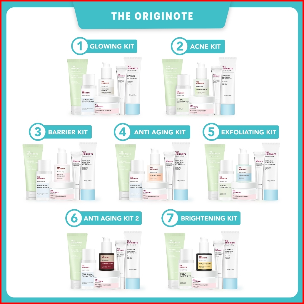Special Bundle 6in1 The Originote Kit Facial Wash Toner Serum Moisturizer Sunscreen Eye Serum Acne Kit Glowing Kit Barri
