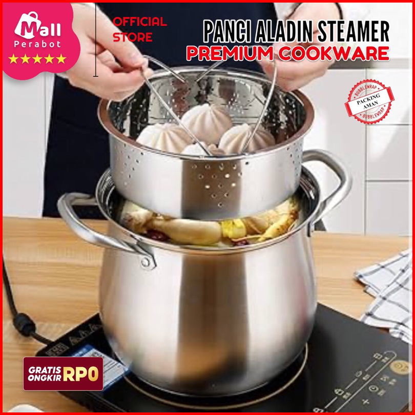 Mall Perabot Panci Tinggi 22 Cm Stokpot Aladin Stainless Steel Tebal Pot Set Alladin Dandang Stockpot Steamer Kukusan Se