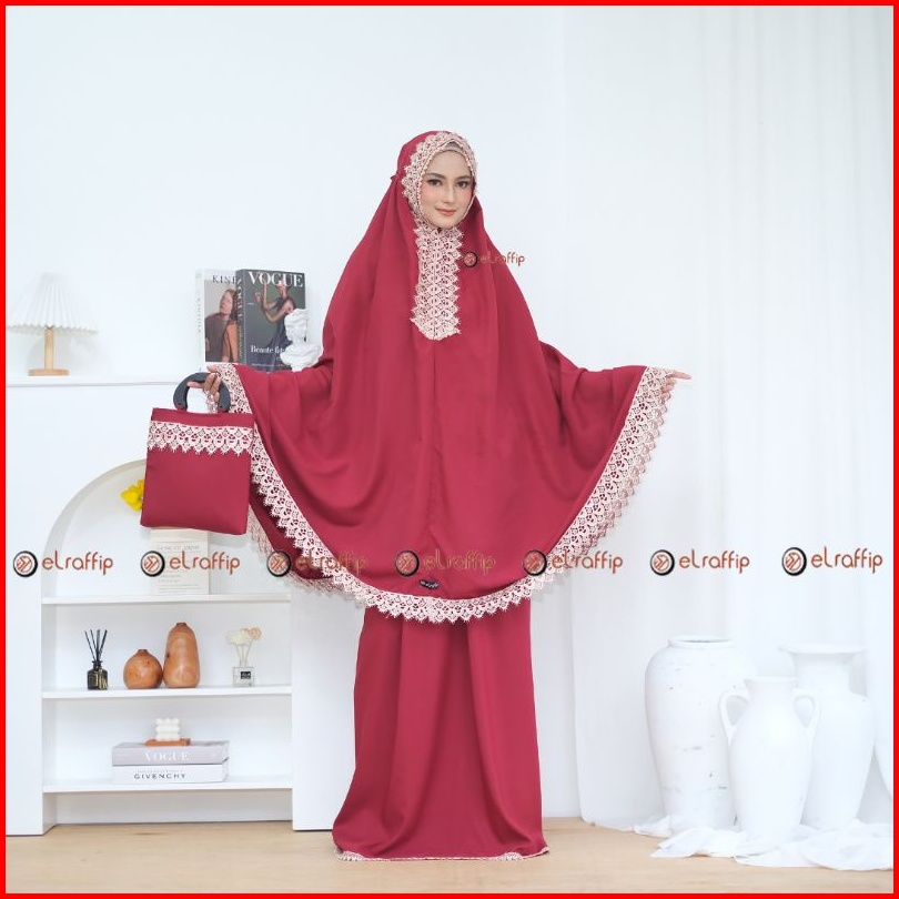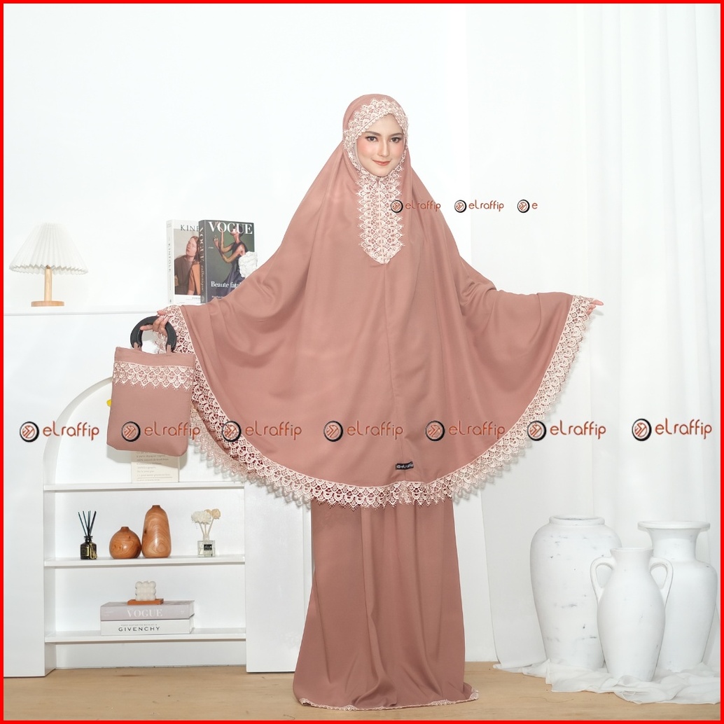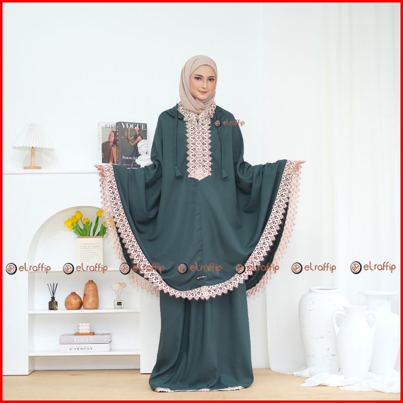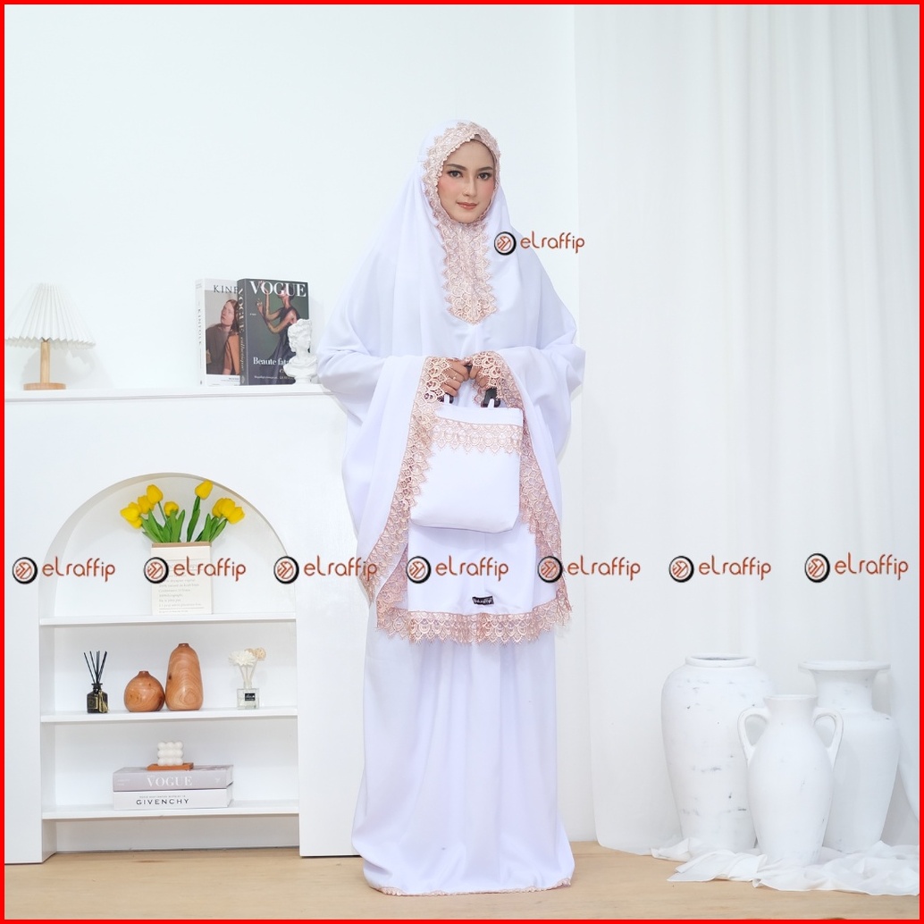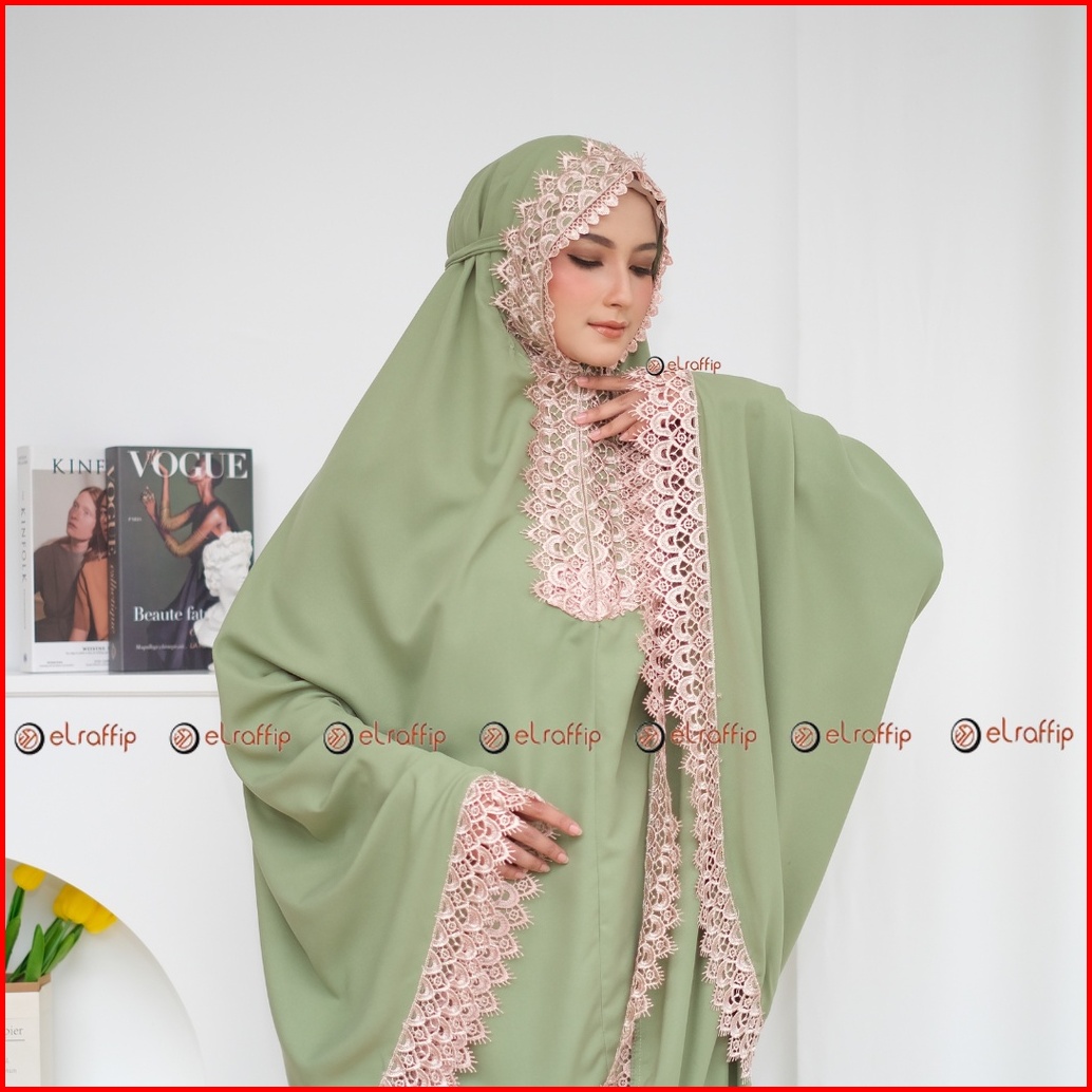 Elraffip-mukena Dewasa 2in1 Katun Polos Kombinasi Renda Bordir