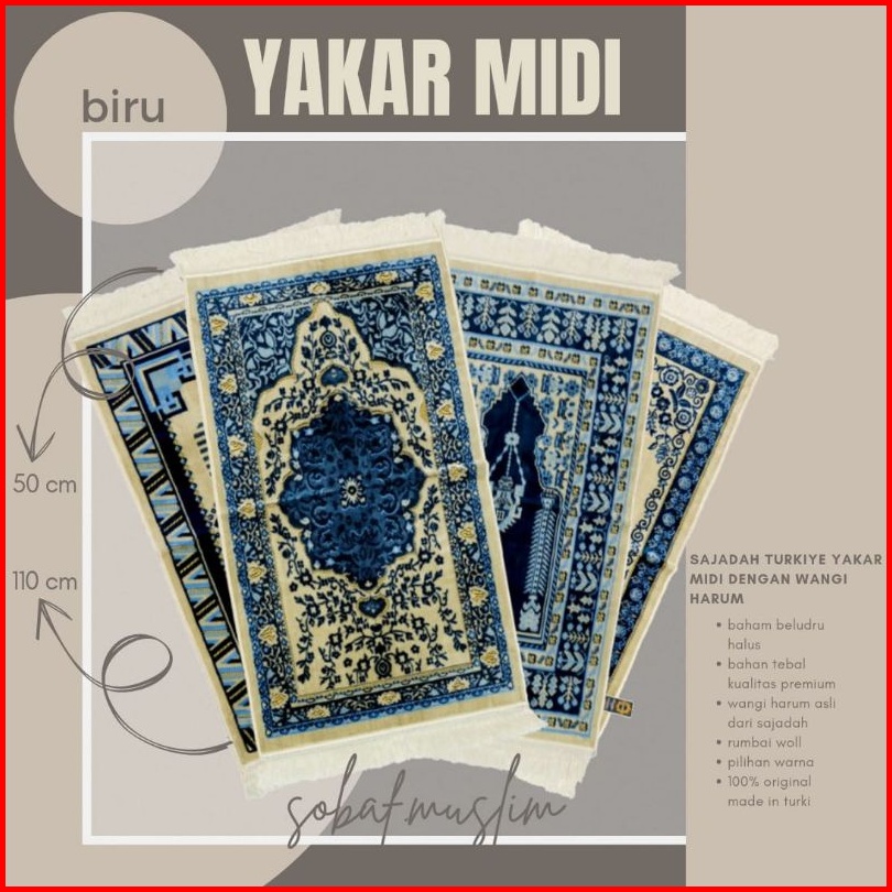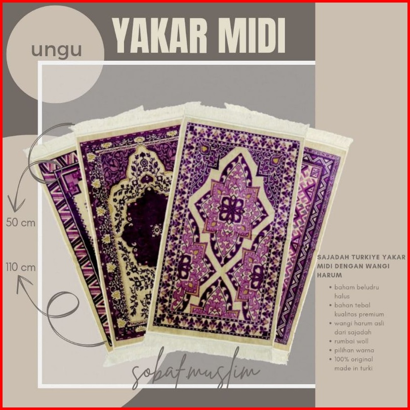 Sajadah Turki Bludru Tebal Yakar Midi Uk 105 X 50 Cm