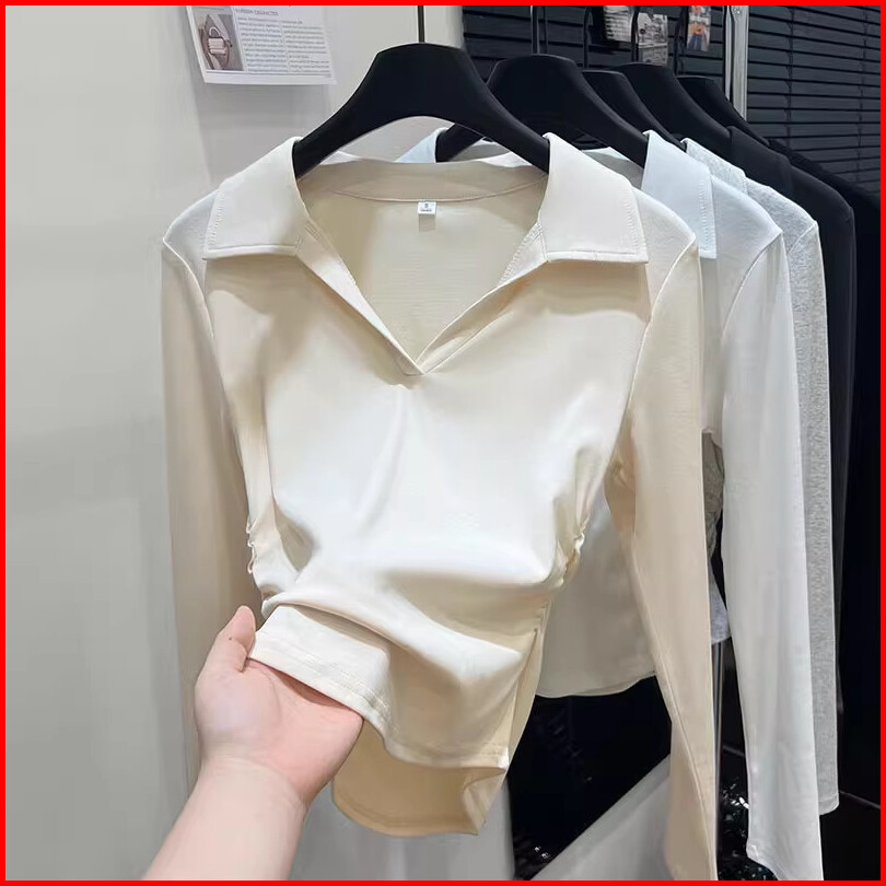 Kaos Kerah Polo Lengan Panjang Abu Bunga Premium