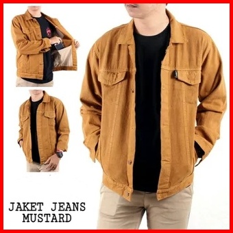 Jaket Jeans Denim Pria Jumbo Big Size Cowok Cowo Kekinian Polos Mustard Oversize Premium Quality