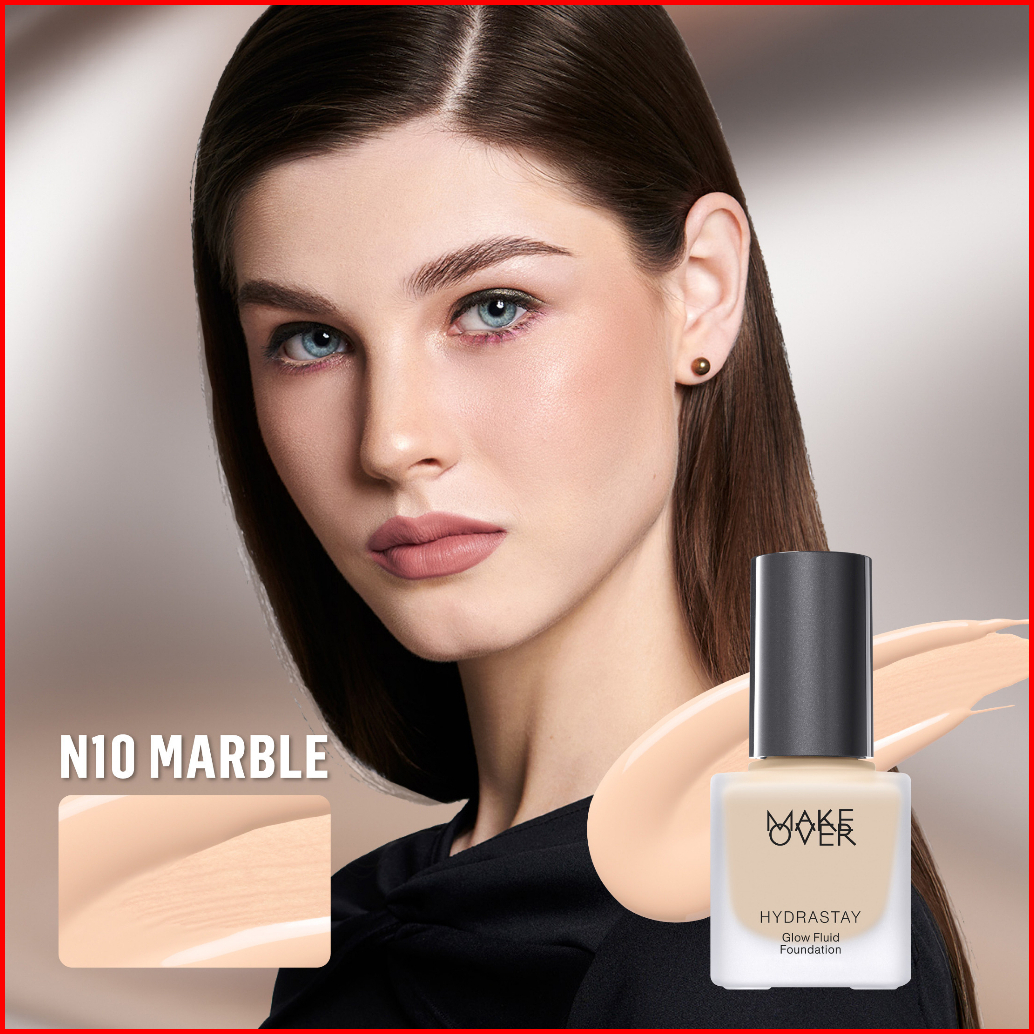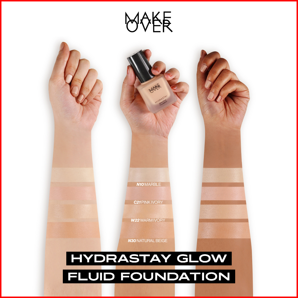 Make Over Hydrastay Glow Fluid Foundation - Glow High Coverage Ringan Poreless Hydrating Untuk Makeup Tahan Lama Non-com